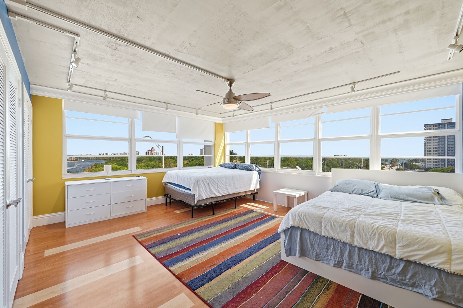 Baseboards Wall, Ceiling Fan, Concrete Ceiling, Drywall, Elevator, Natural Light, Smoke Carbon Monoxide Detector, Tile Floor, Track Lighting, Two Closets, Vent, Wood Finish Floor, Baseboards Wall, City View, Concrete Ceiling, Natural Light, Two Closets