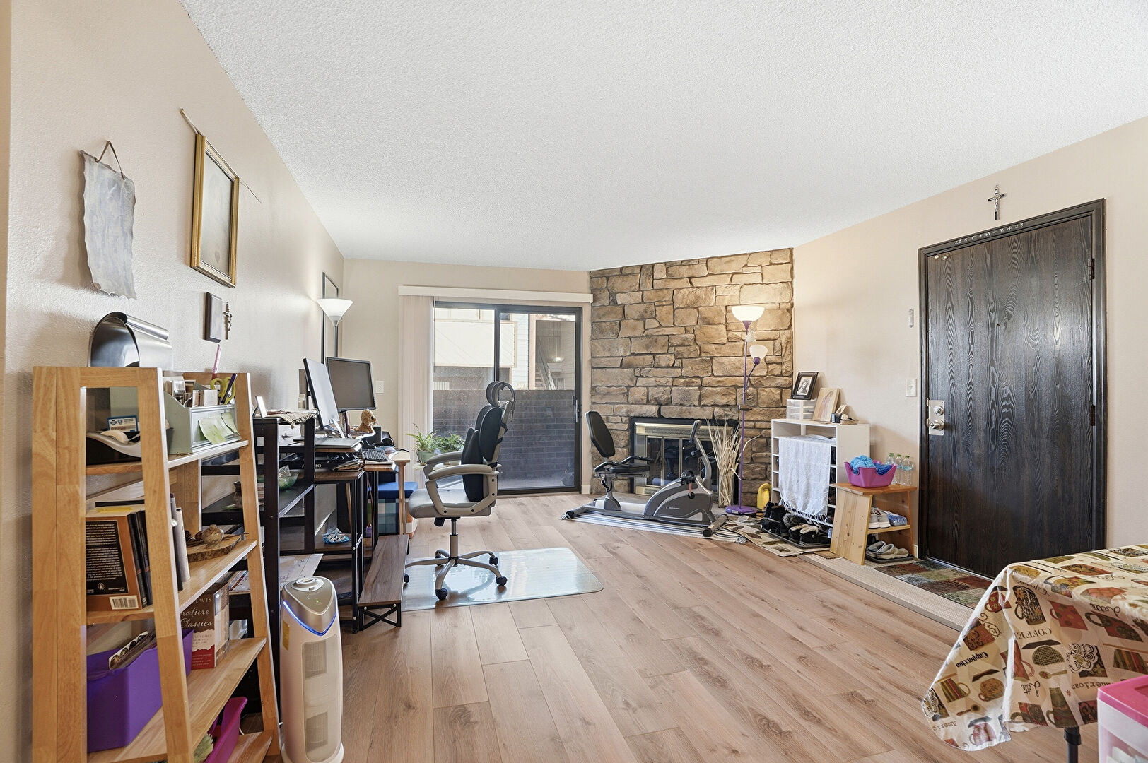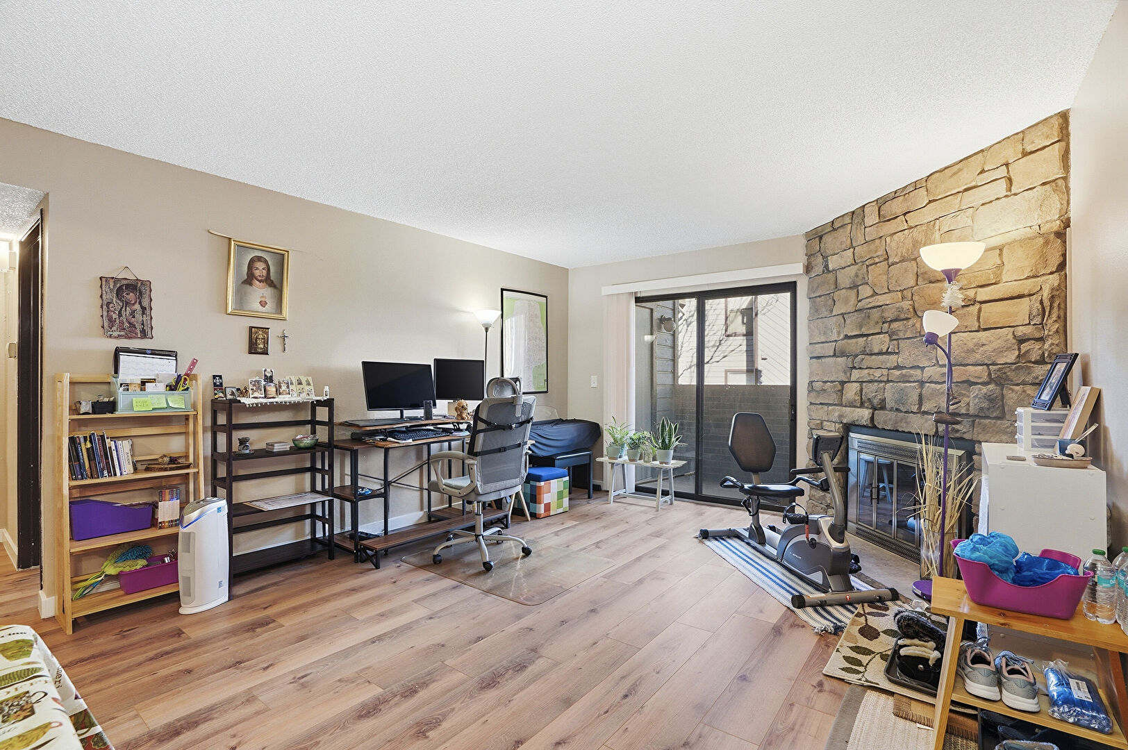 Baseboards Wall, Drywall, Fireplace, Laundry, Natural Light, Office Area, Textured Ceiling, Vent, Wood Finish Floor, Natural Light, Office Area, Textured Ceiling, Wood Finish Floor