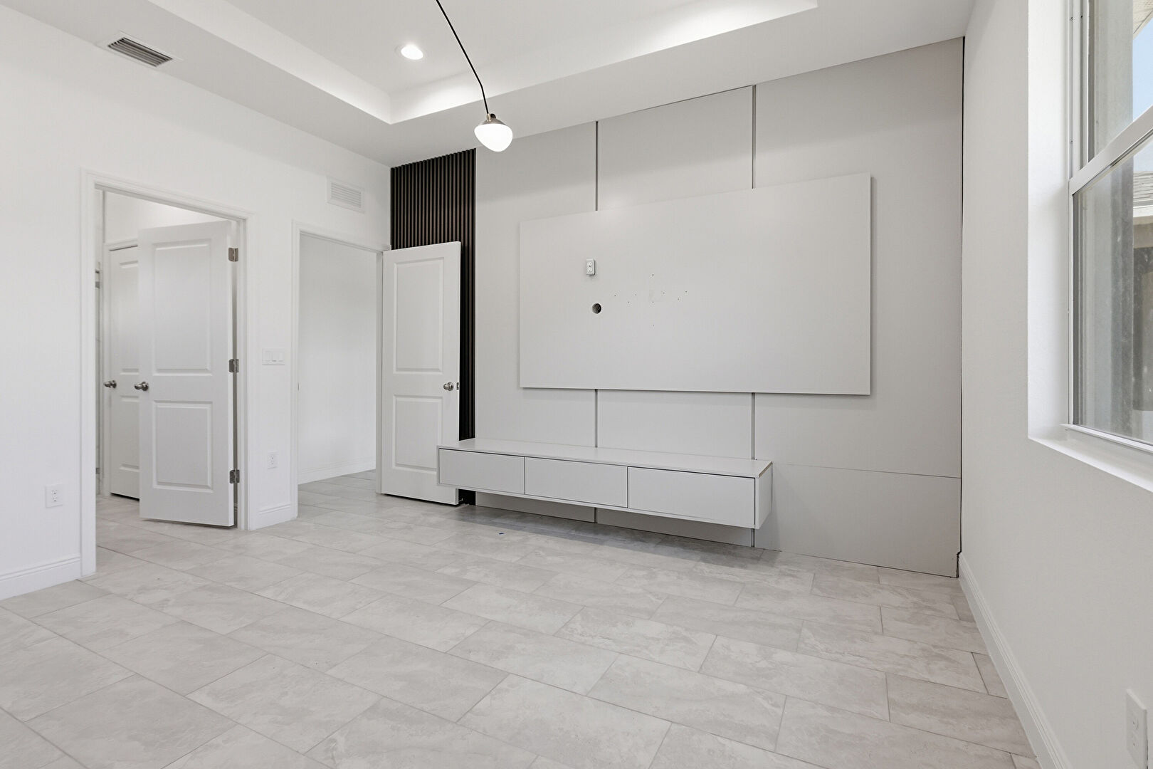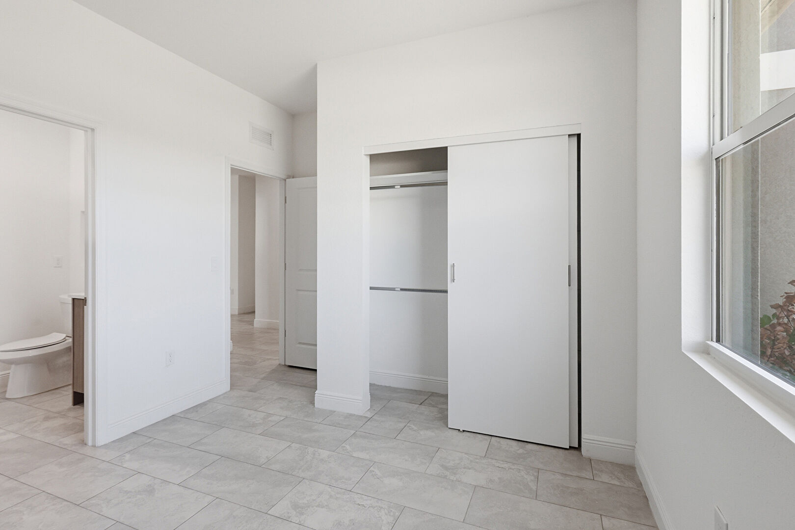 Accent Wall, Baseboards Wall, Closet, Drywall, Natural Light, Vent, Drywall, Ensuite Bathroom, Tile Floor