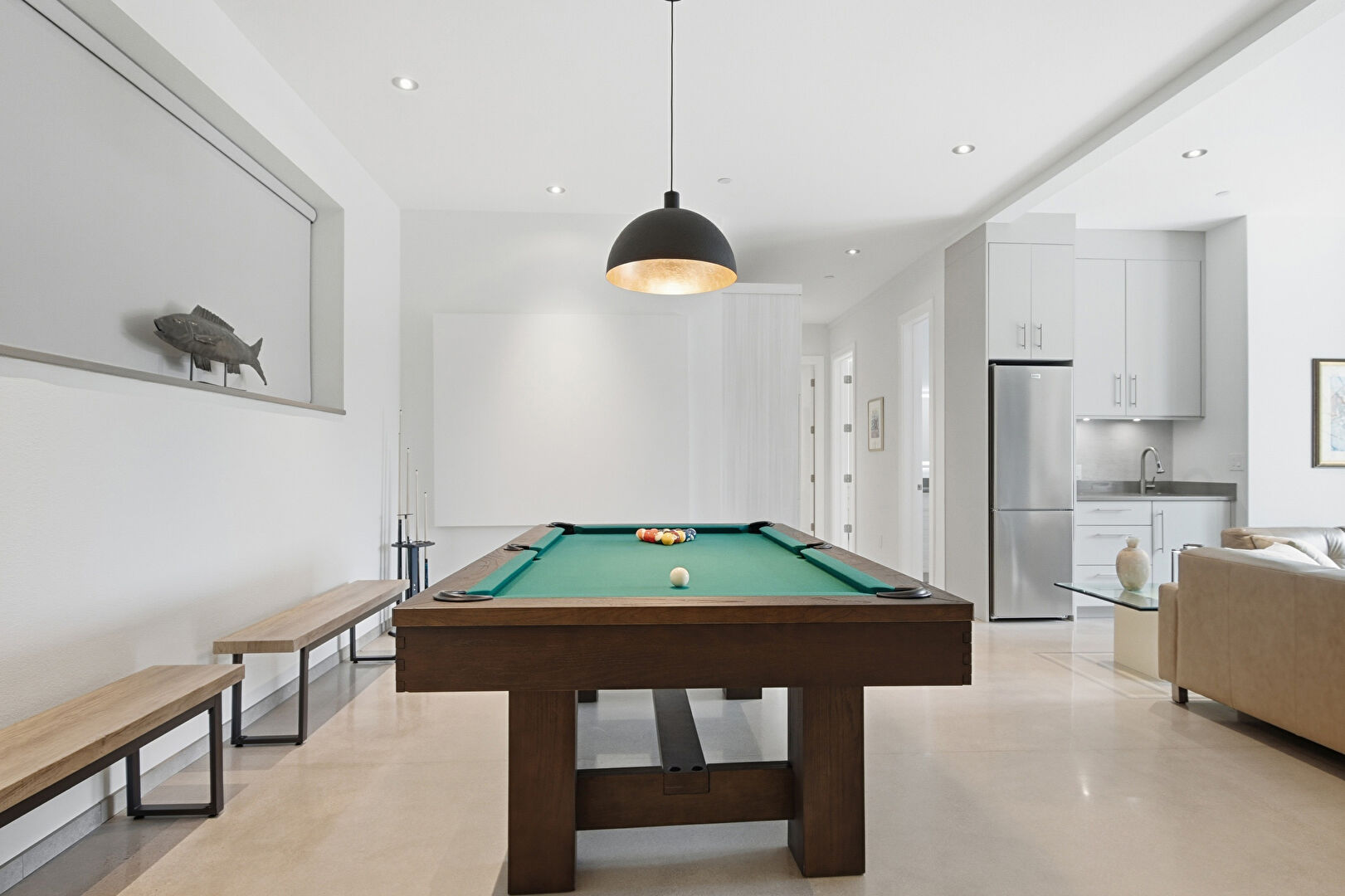 Baseboards Wall, Billiards, Concrete Floor, Drywall, Recessed Lighting