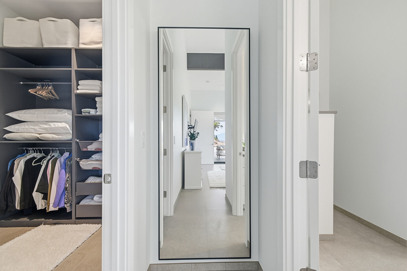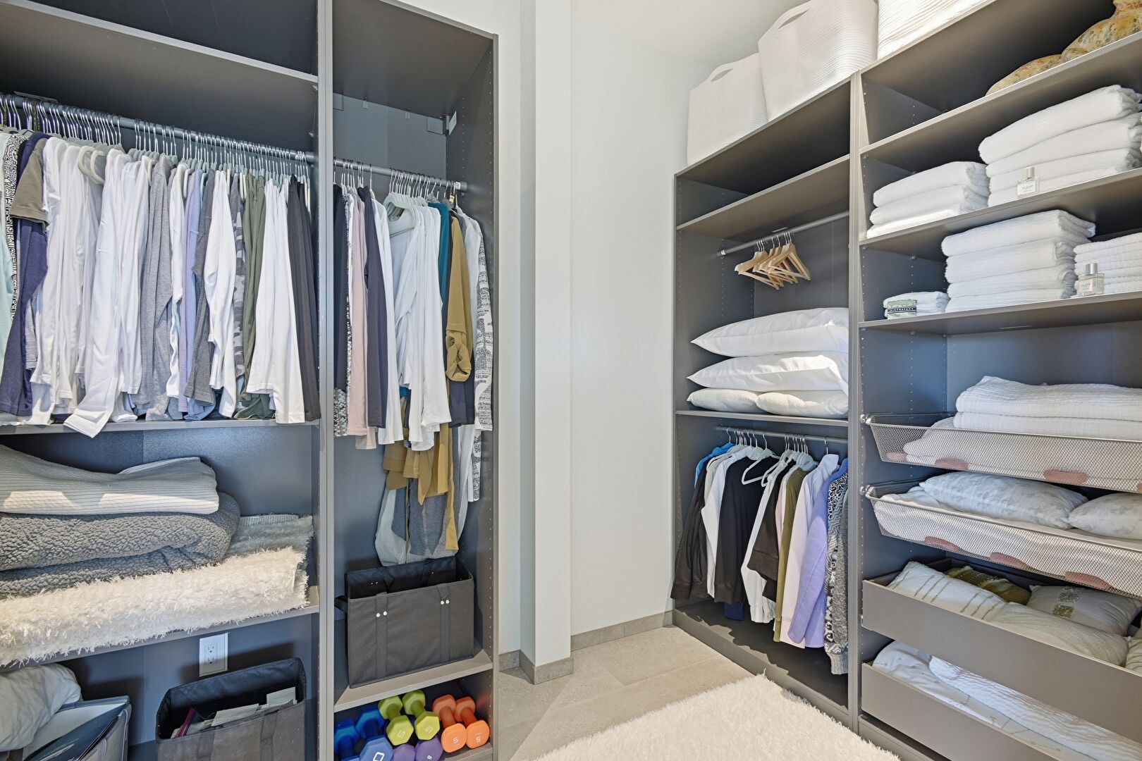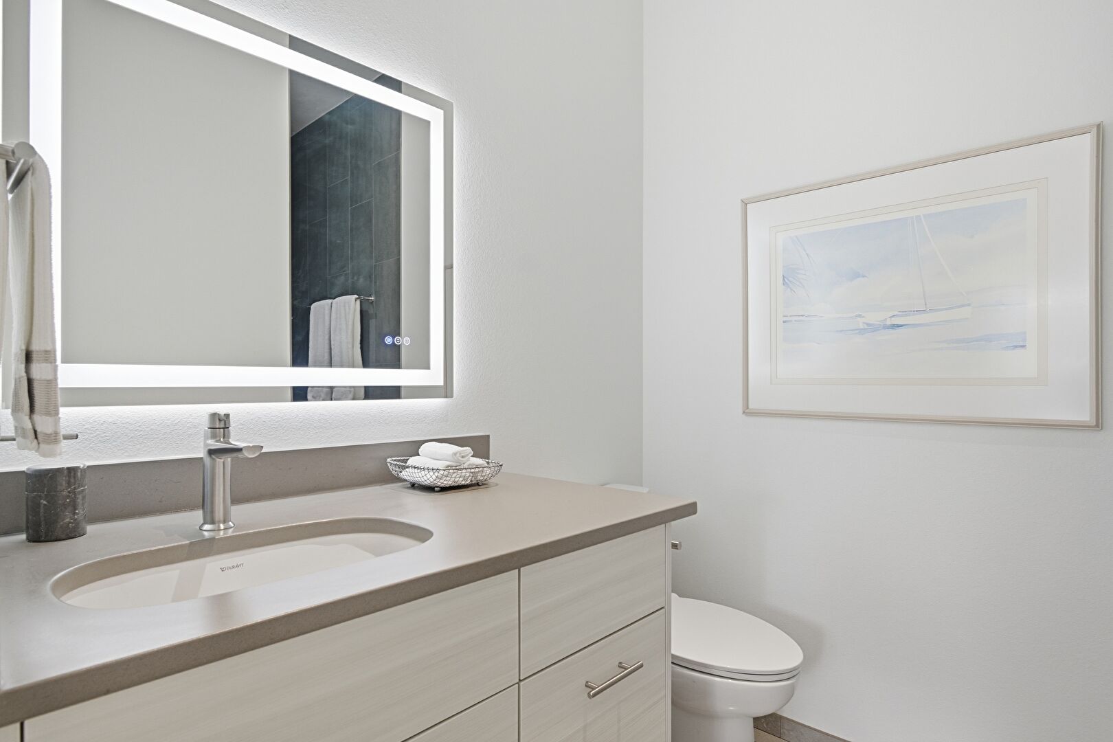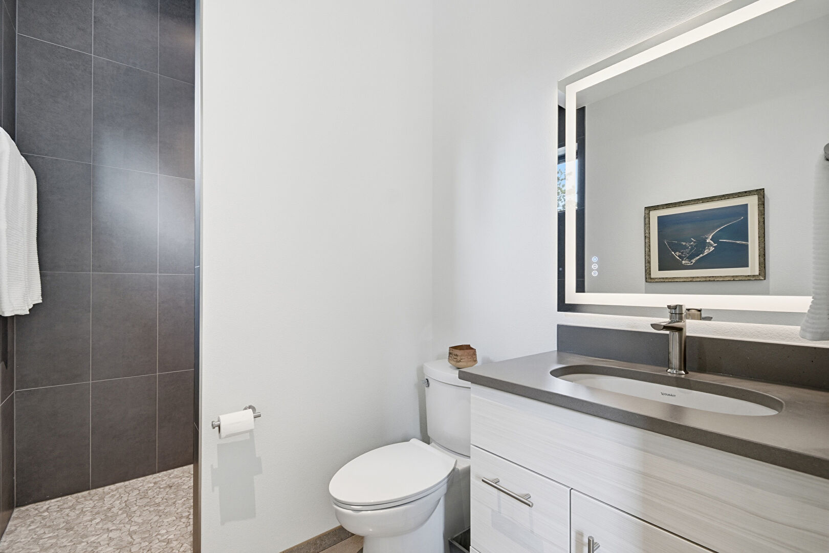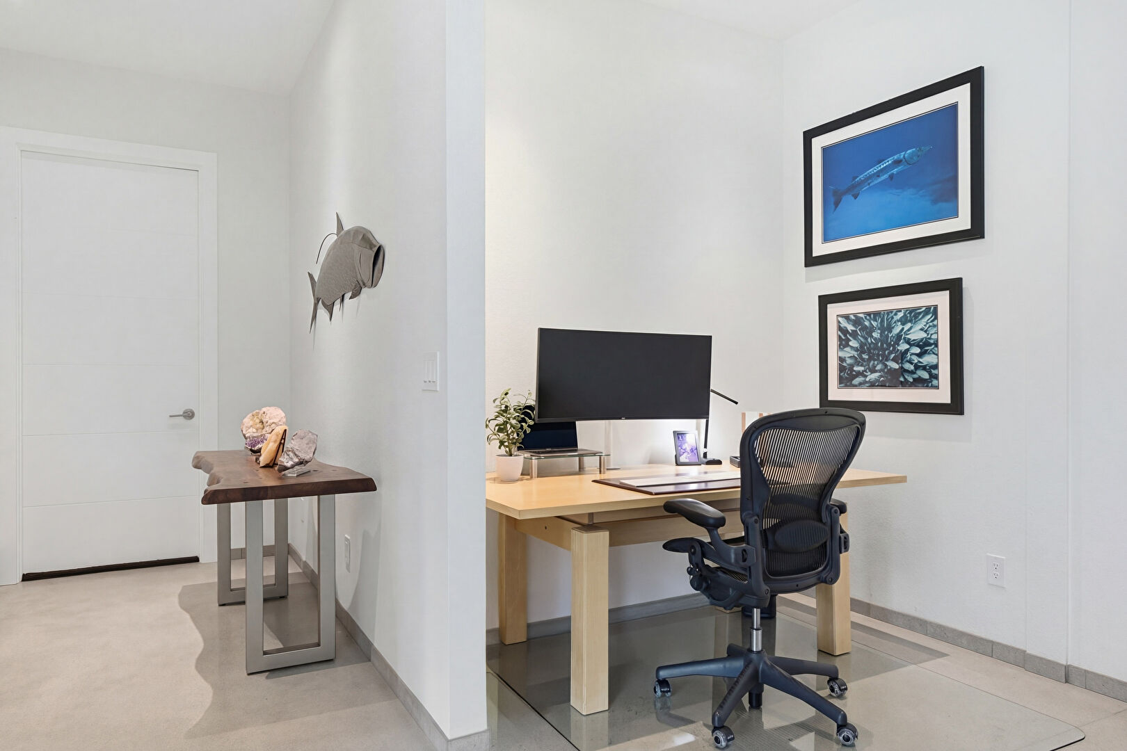Access To Exterior, Barn Door, Baseboards Wall, Ceiling Fan, Concrete Floor, Drywall, High Ceiling, Mountain View, Natural Light, Recessed Lighting, Vaulted Ceiling, Vinyl Floor, Baseboards Wall, Drywall, Ensuite Bathroom, High Ceiling, Natural Light, Recessed Lighting