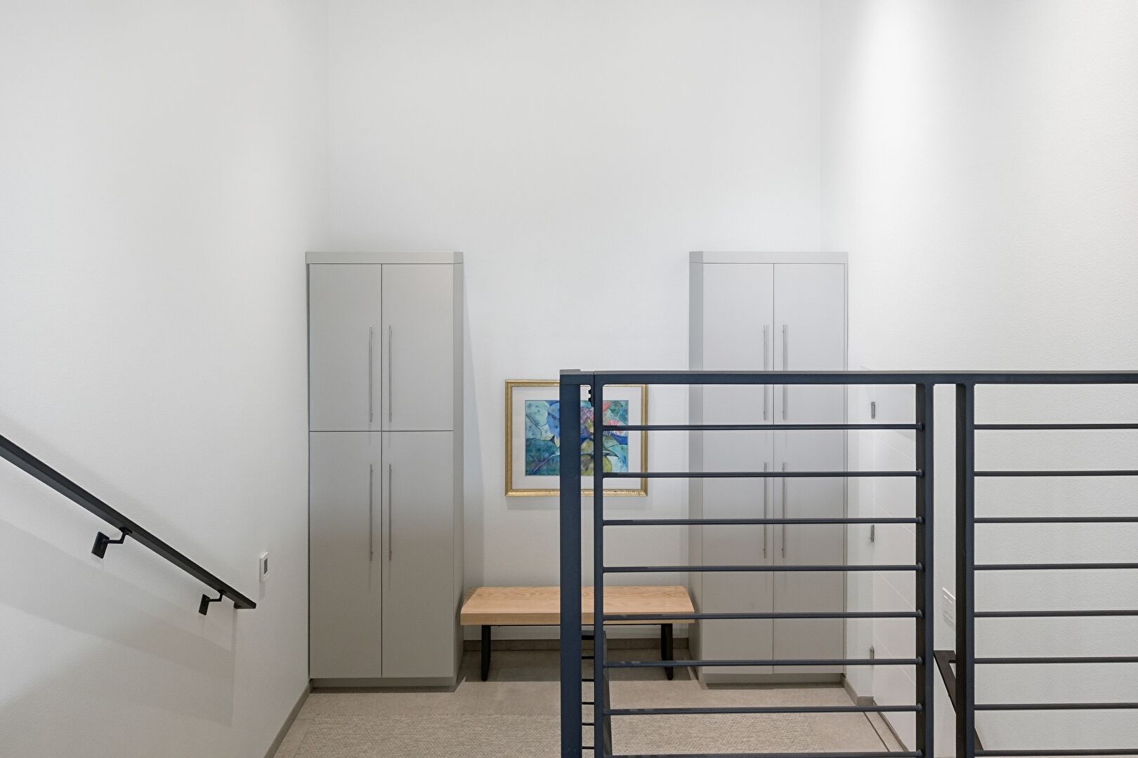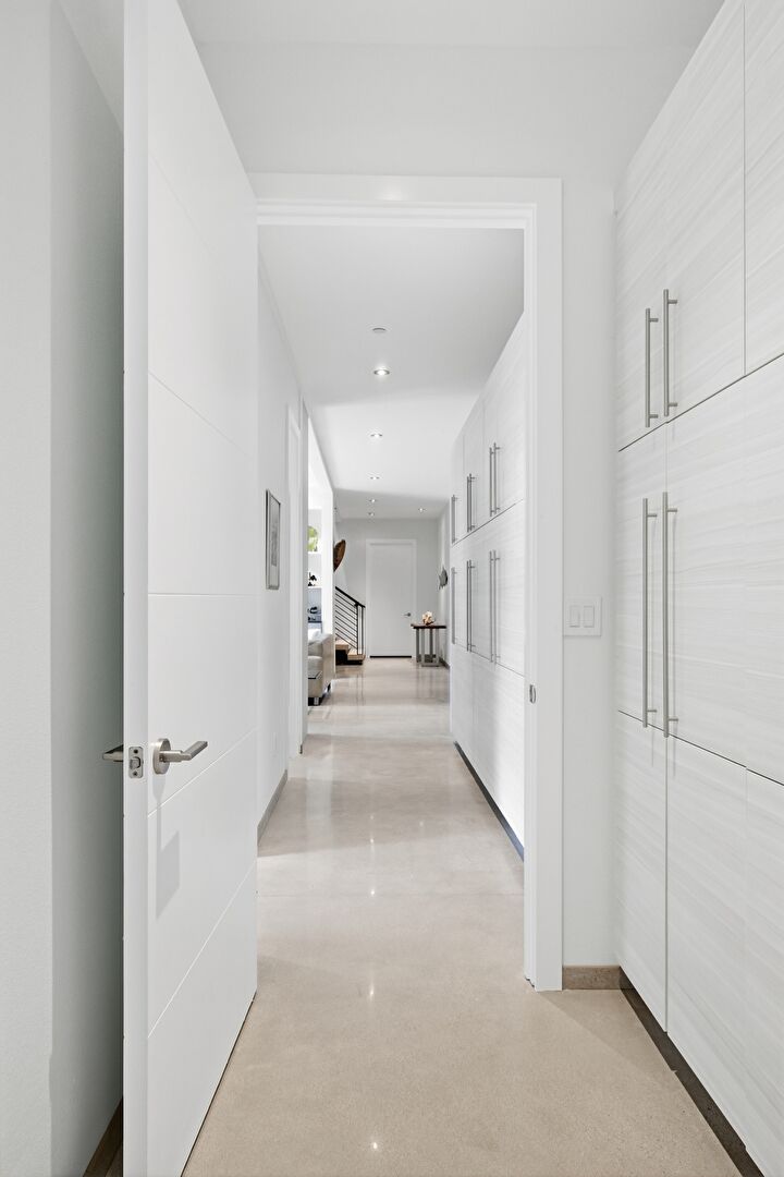 Baseboards Wall, Concrete Floor, Drywall, High Ceiling, Natural Light, Recessed Lighting, Tile Floor, Upstairs Landing, Vinyl Floor, Baseboards Wall, Drywall, Natural Light