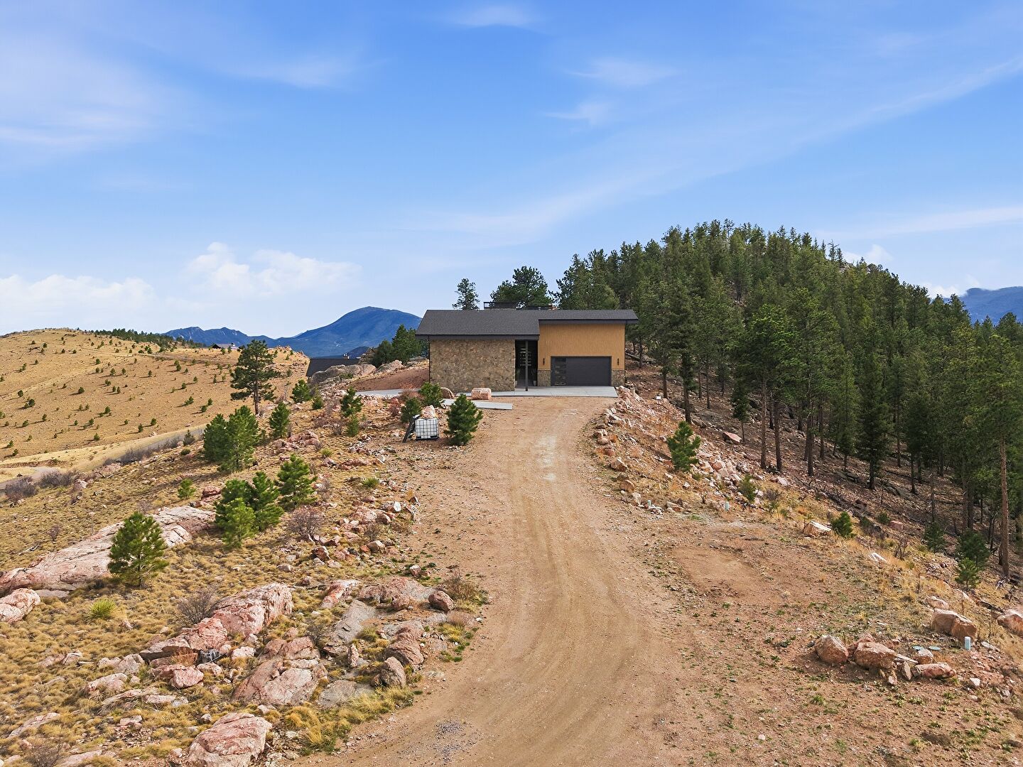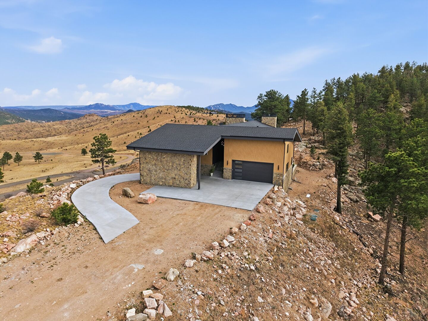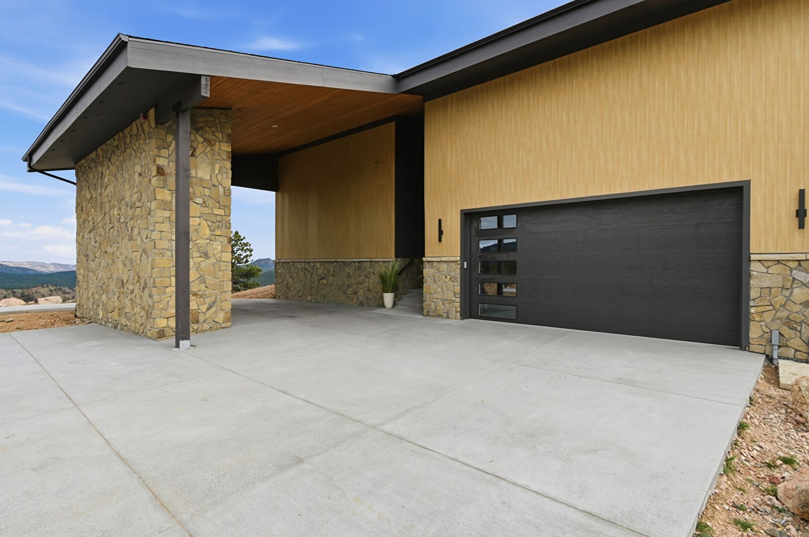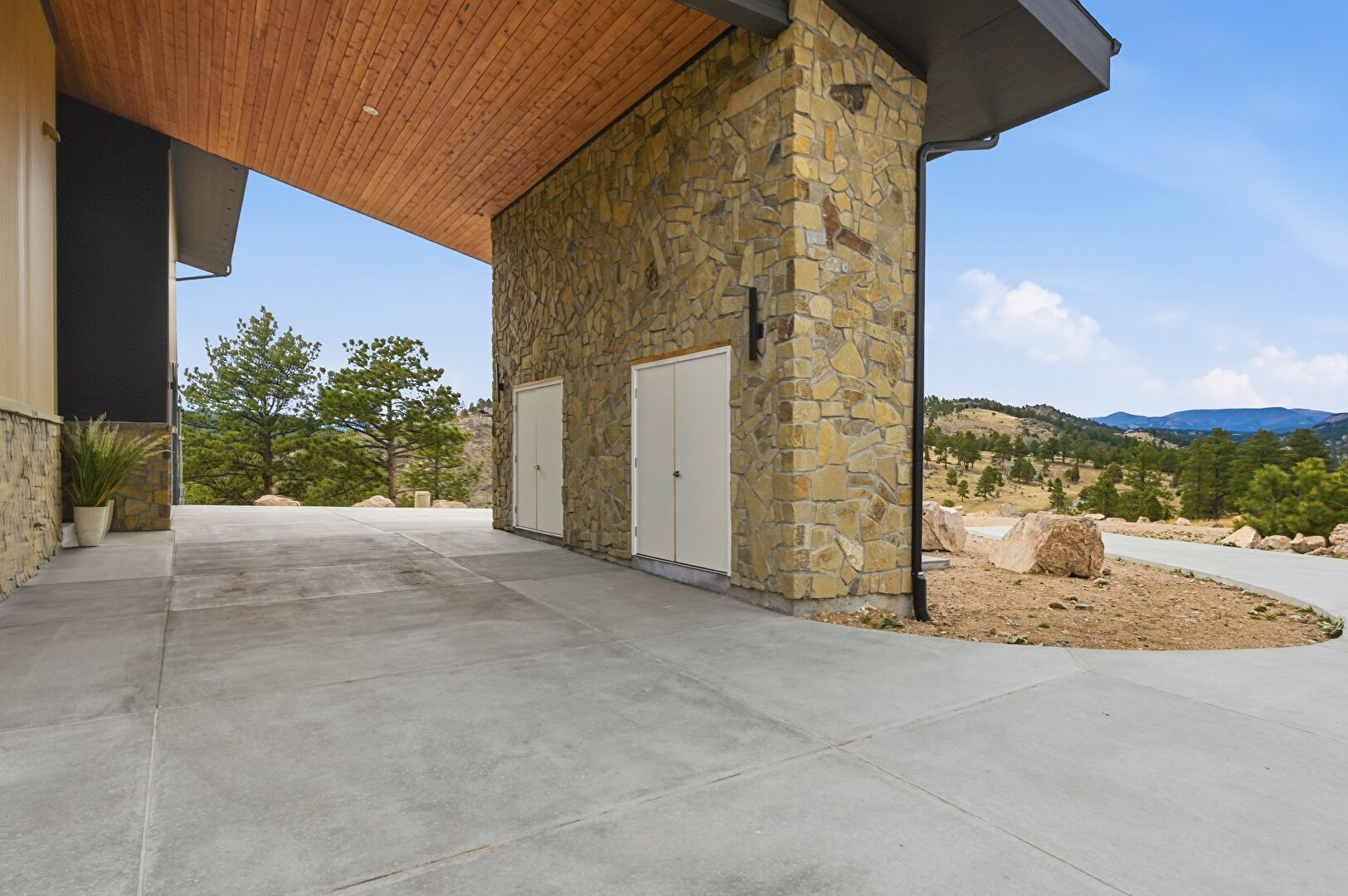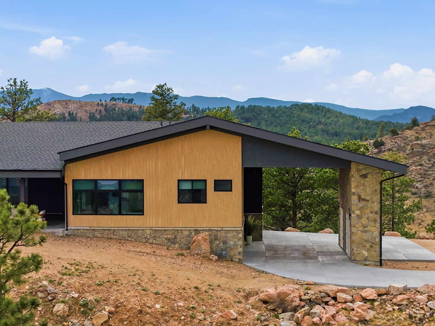 Attached Carport, Downspout, Driveway, Garage, Gutters, Mountain View, Patio, Rural View, Stone Siding, Stucco Siding, Vertical Siding, Chimney, Driveway, Mountain View, Wood Siding