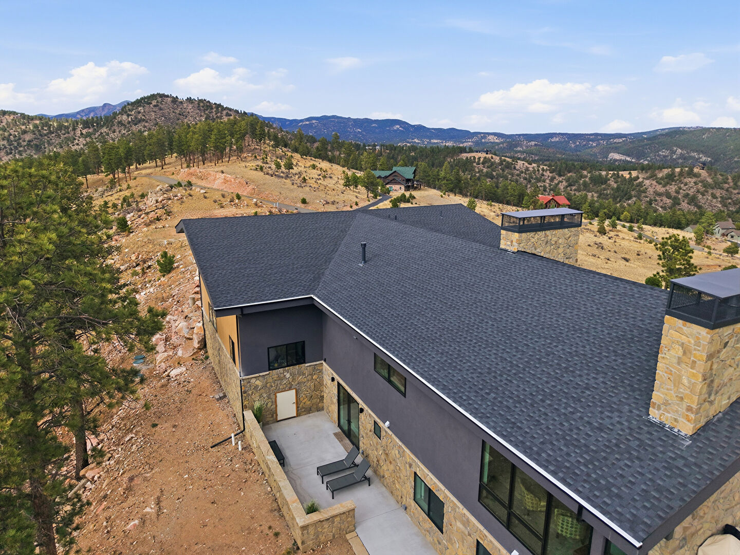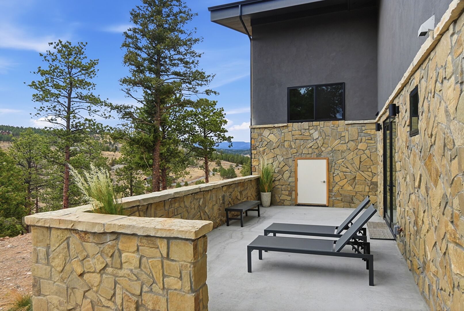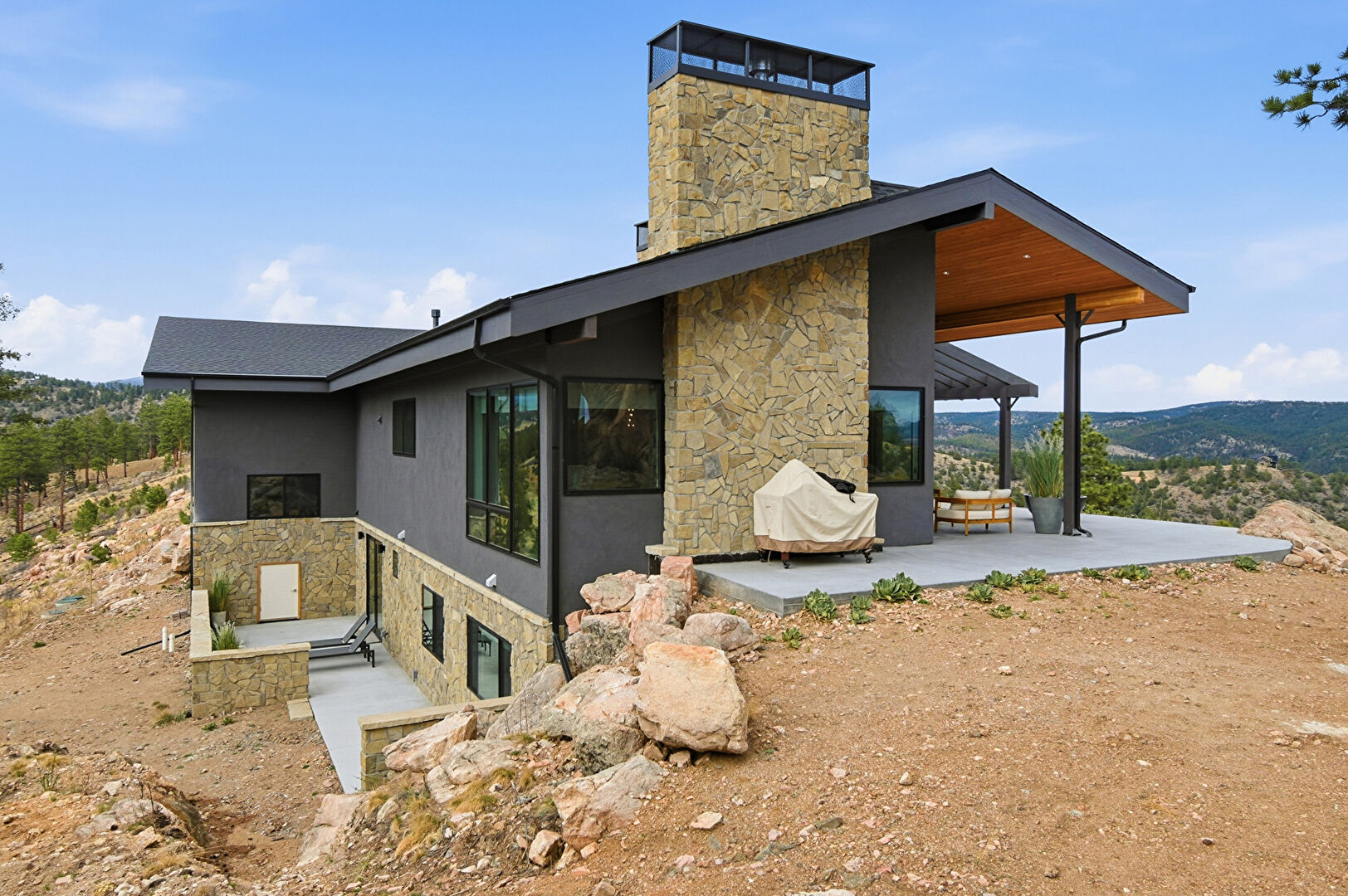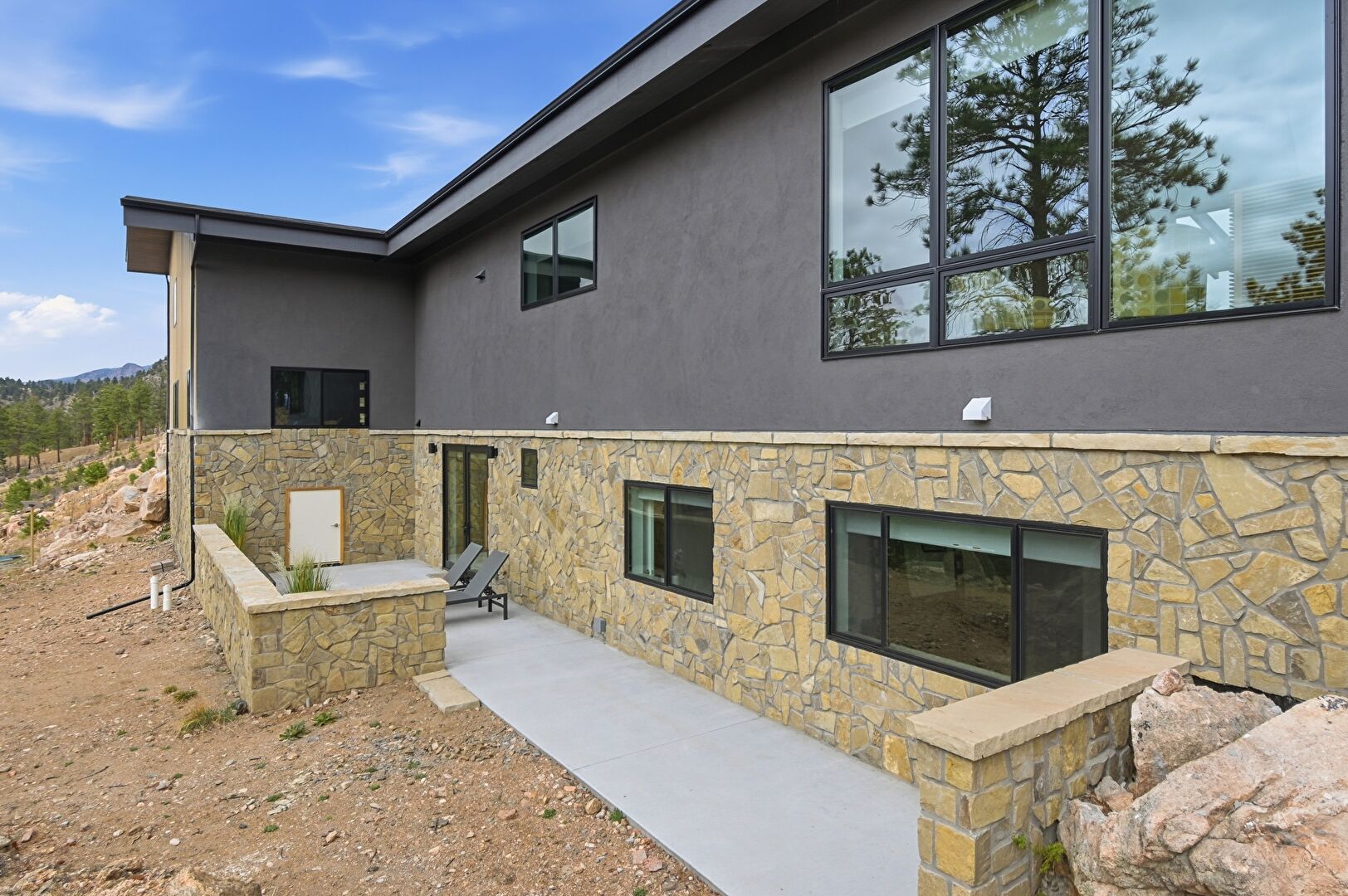Chimney, Downspout, Gutters, Mountain View, Patio, Stone Siding, Stucco Siding, Patio, Rural View, Stone Siding, Stucco Siding