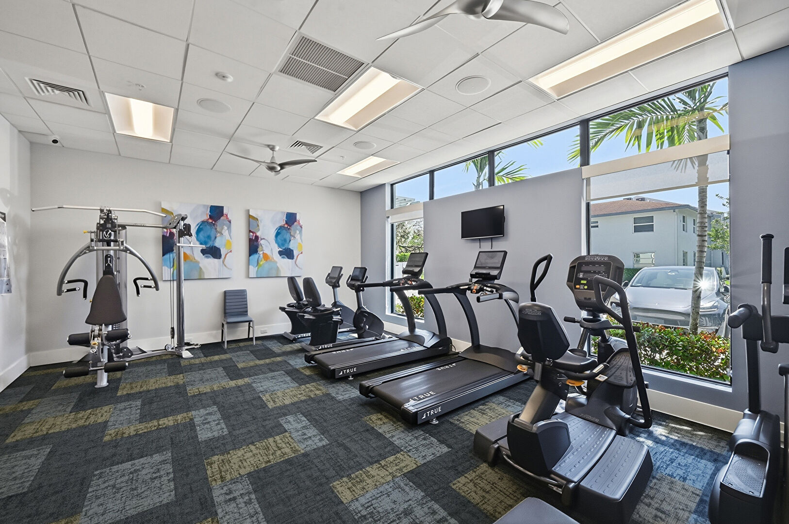 Baseboards Wall, Drywall, High Ceiling, Natural Light, Recessed Lighting, Tile Floor, Vaulted Ceiling, Vent, Ceiling Fan