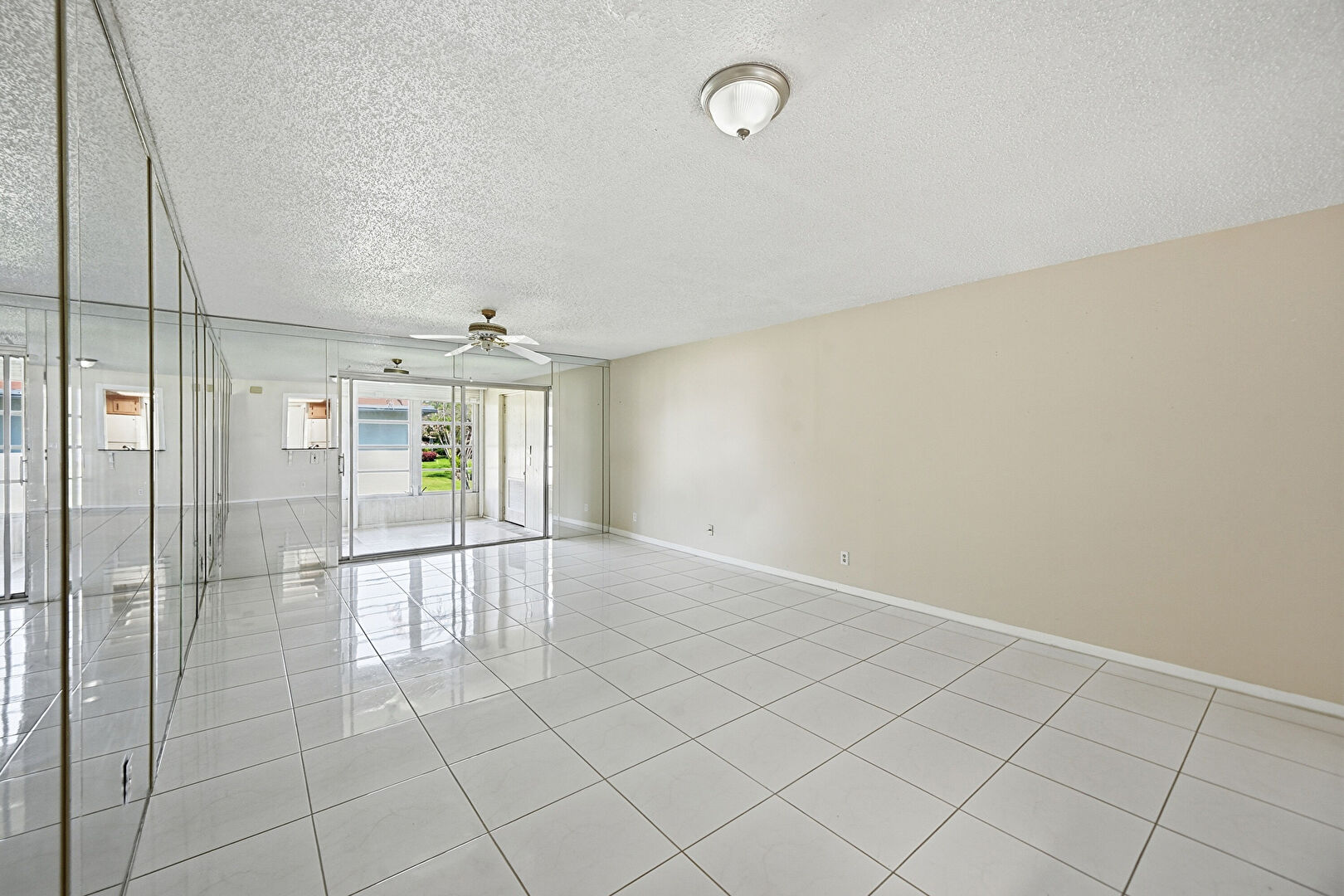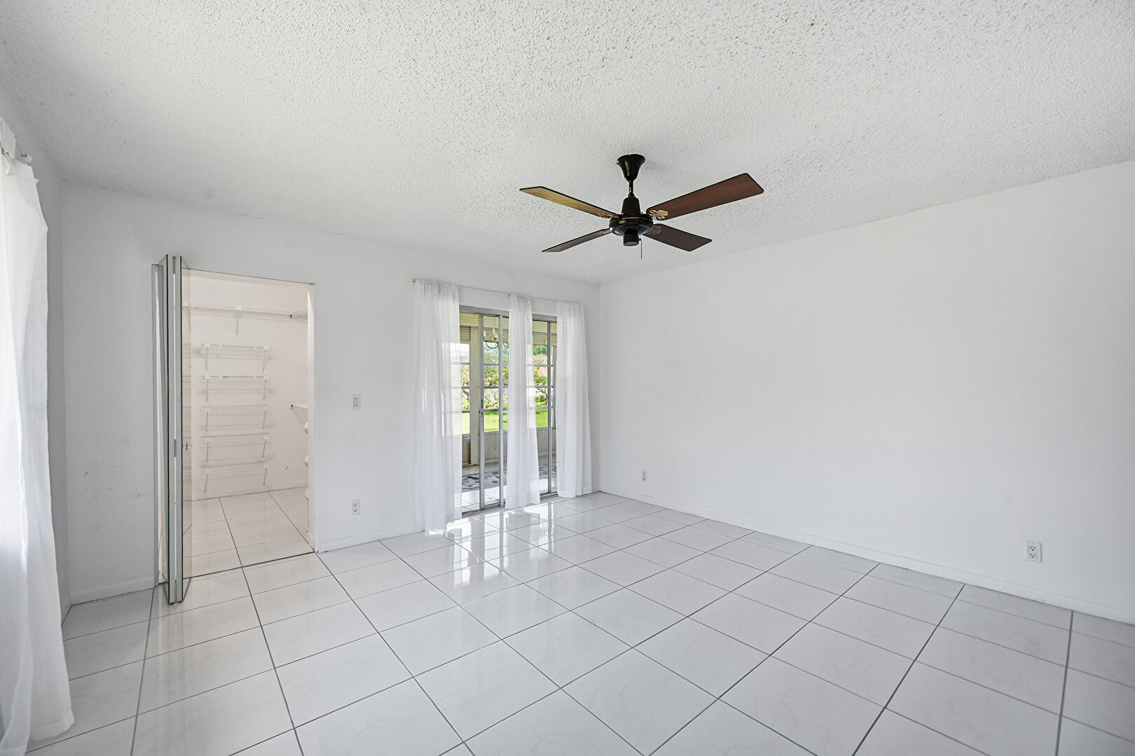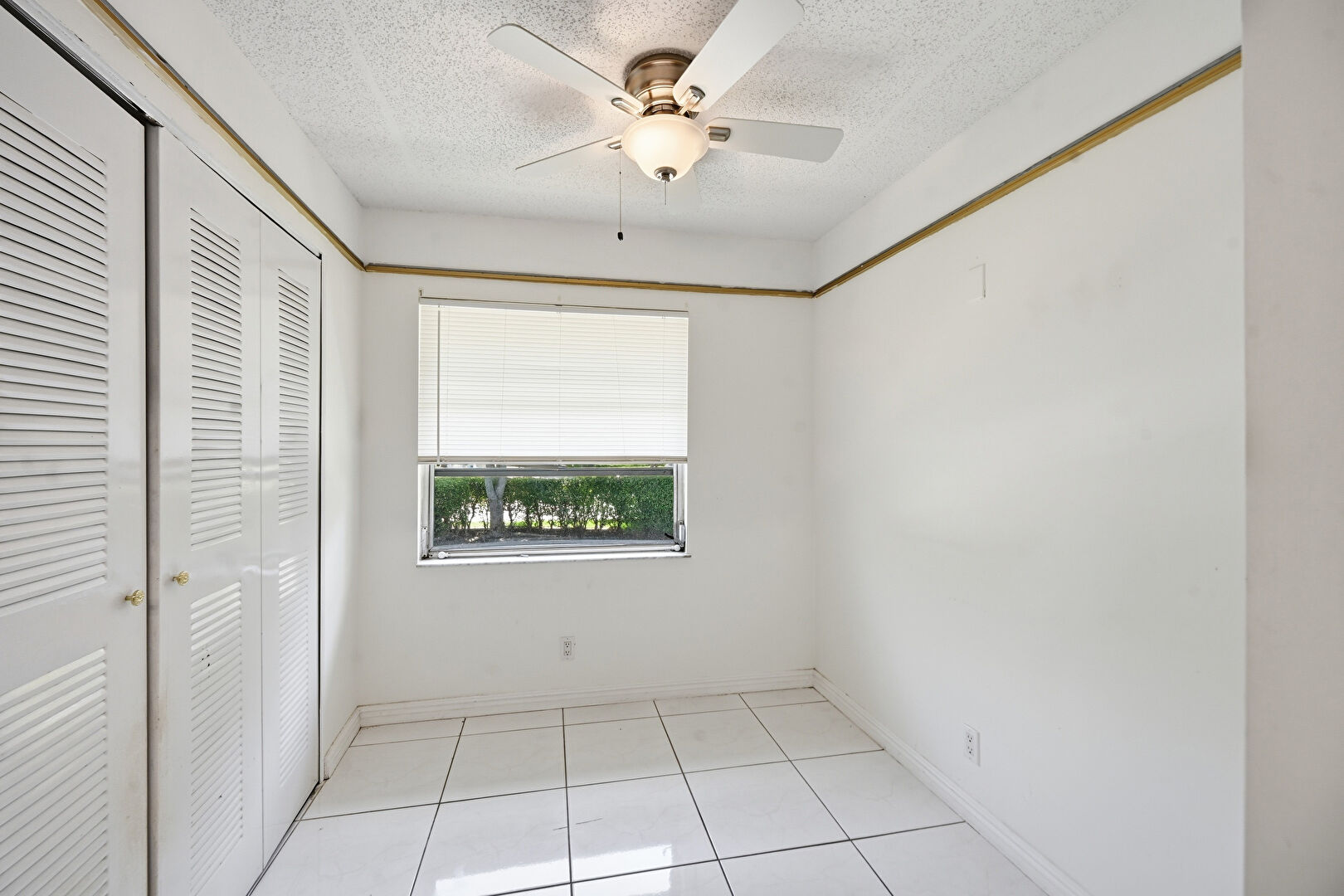 Baseboards Wall, Ceiling Fan, Closet, Drywall, Natural Light, Textured Ceiling, Tile Floor