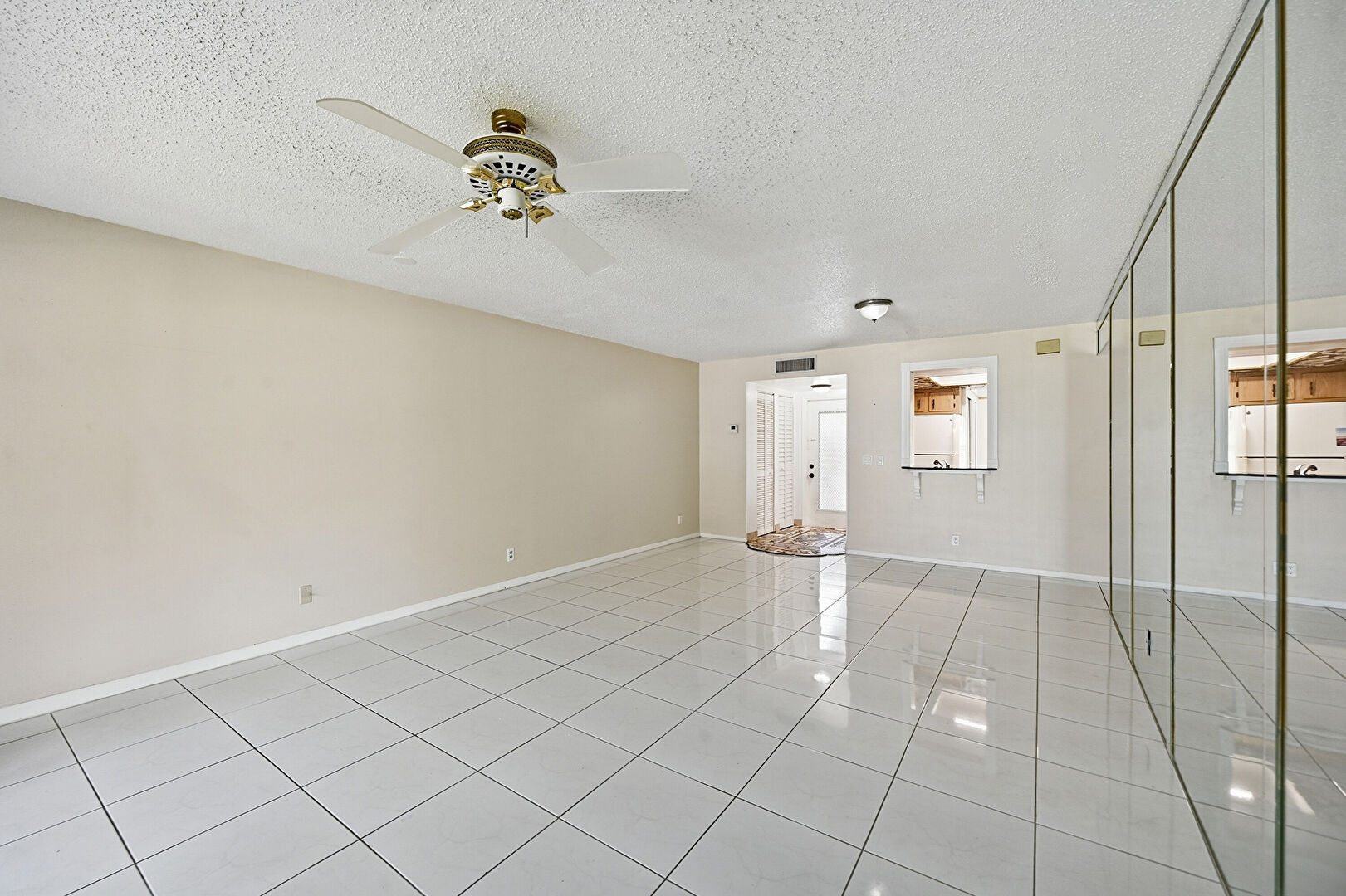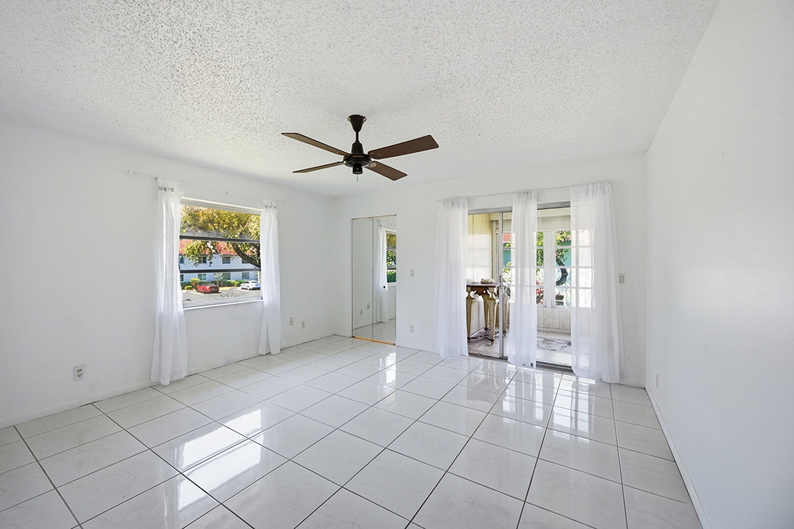 Ceiling Fan, Drywall, Natural Light, Textured Ceiling, Tile Floor, Vent, Drywall, French Doors, Textured Ceiling