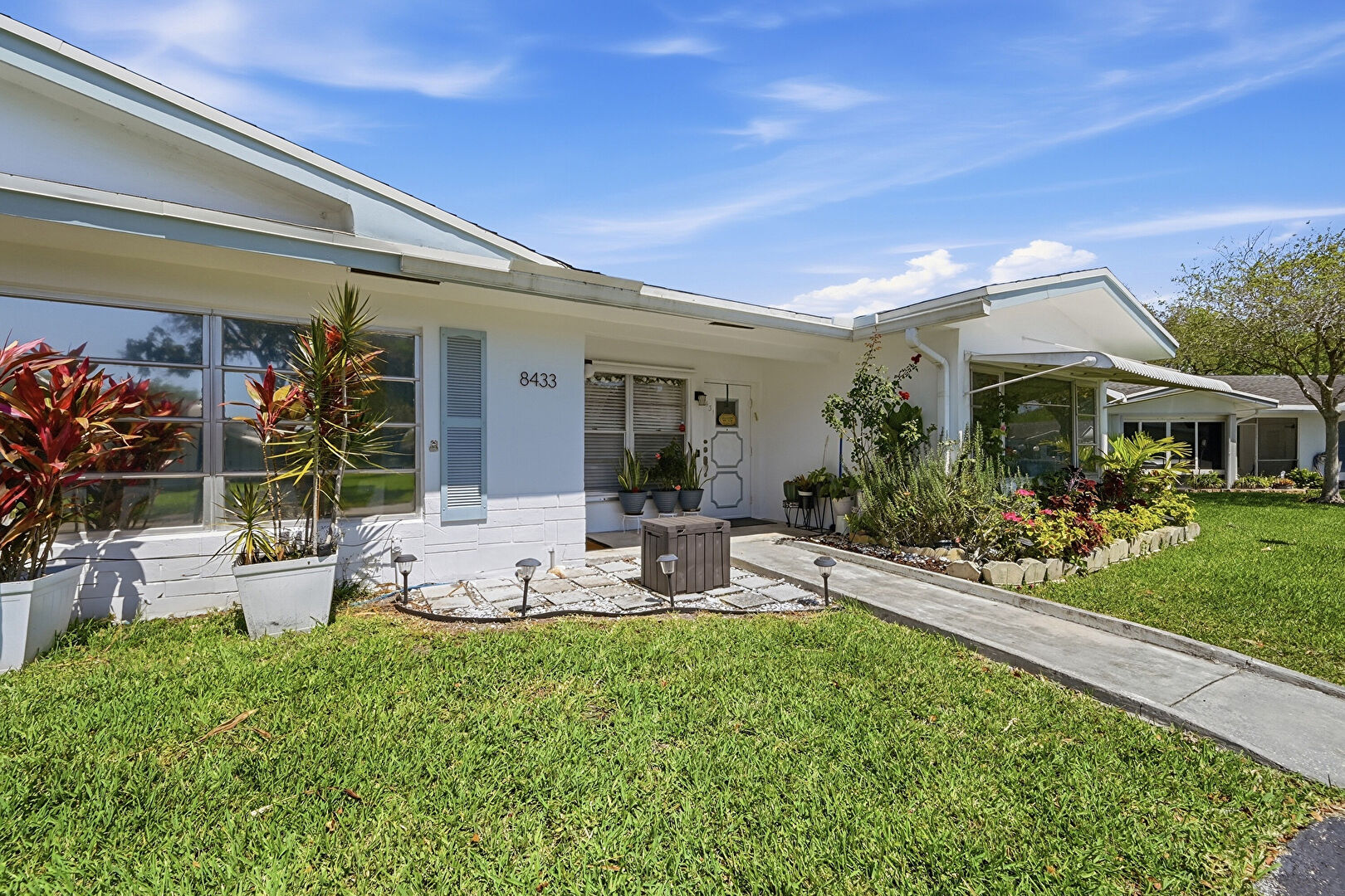 Awning, Lawn, Patio, Stucco Siding, Central Ac