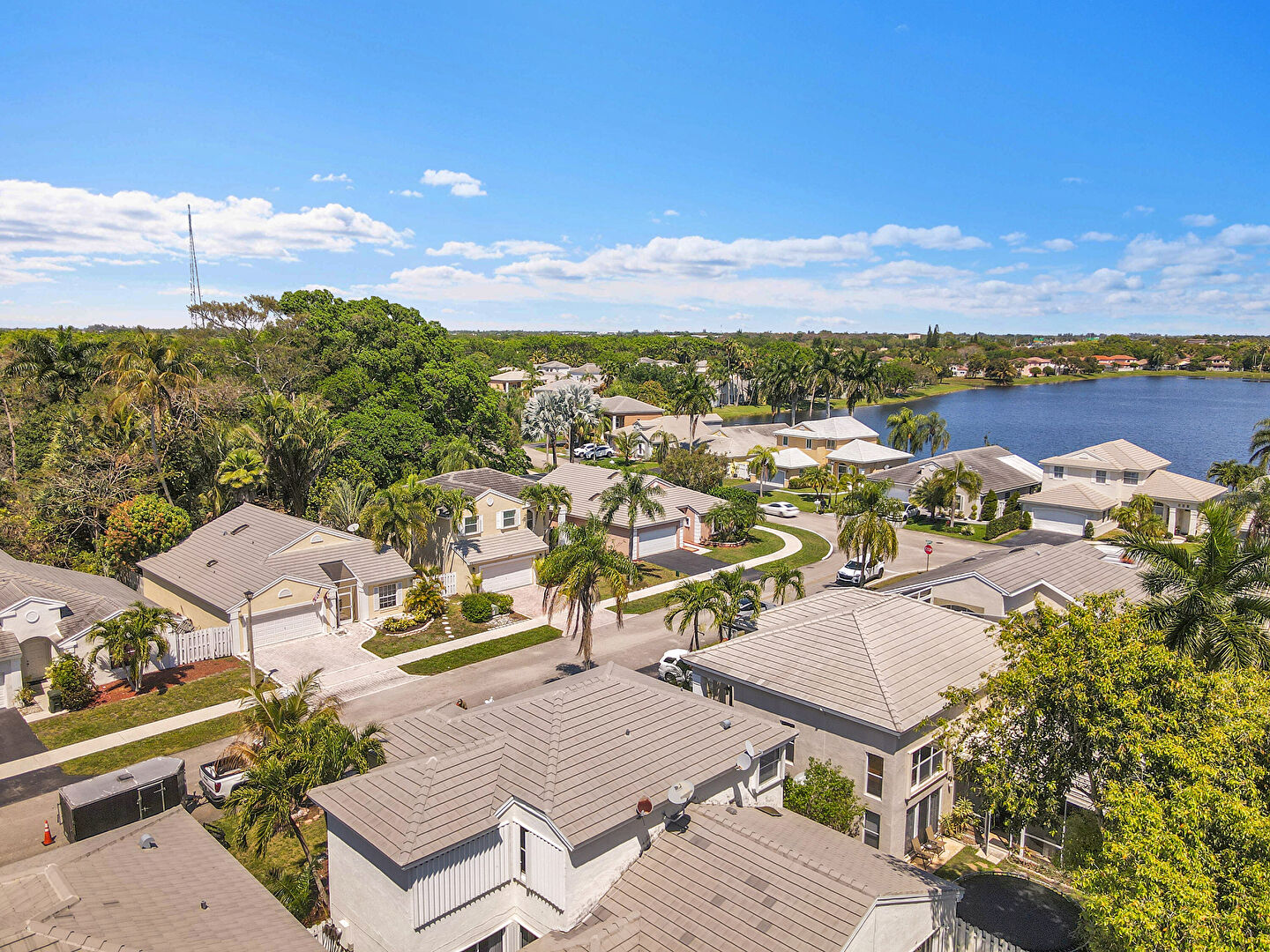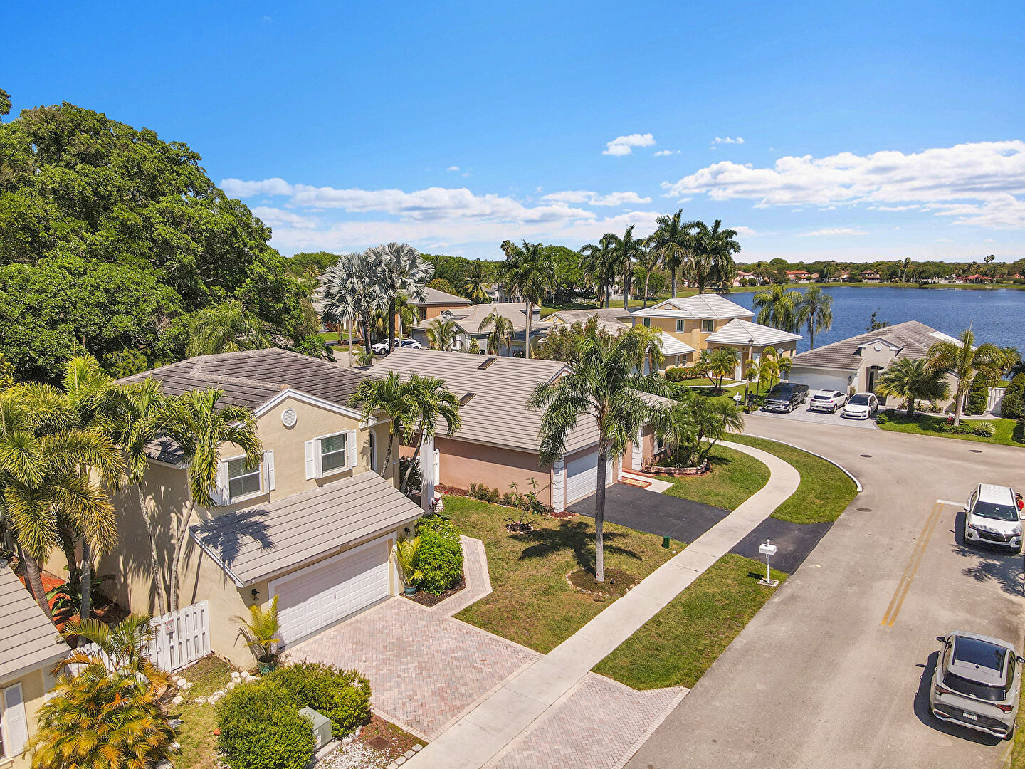 Driveway, Horizontal Siding, Lawn, Residential View, Stucco Siding, Water View, Woods View, Lawn, Residential View, Stucco Siding, Tile Roof, Water View, Woods View
