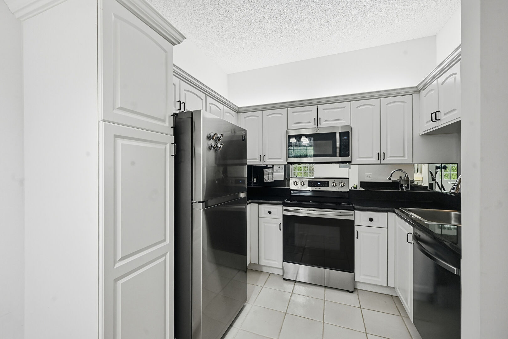 Arched Cabinets, Crown Molding Cabinets, Drywall, Natural Light, Pass Through Window, Raised Cabinets, Stone Countertops, Textured Ceiling, Tile Floor, Raised Cabinets, Tile Floor