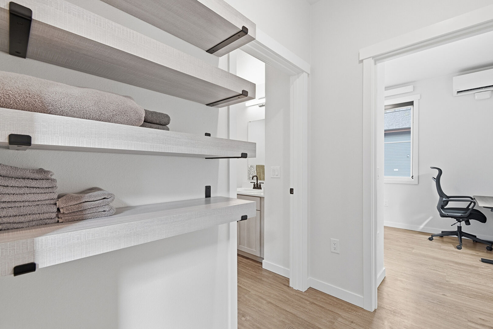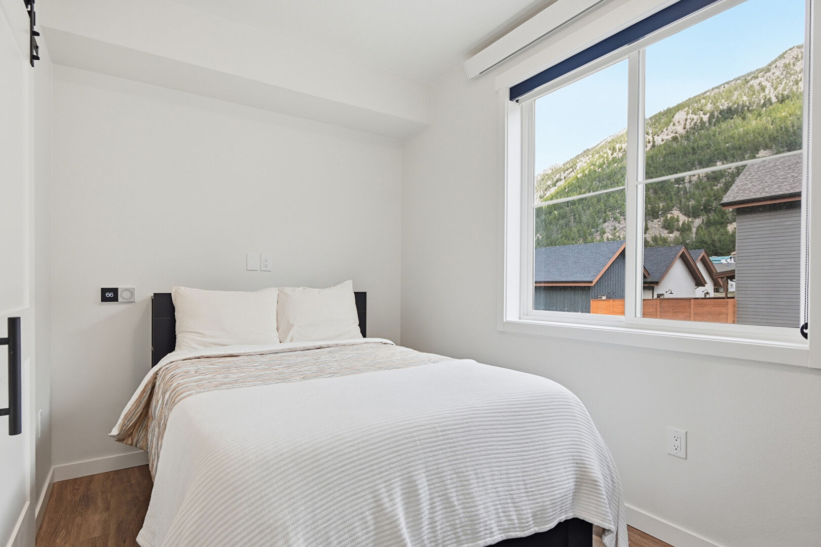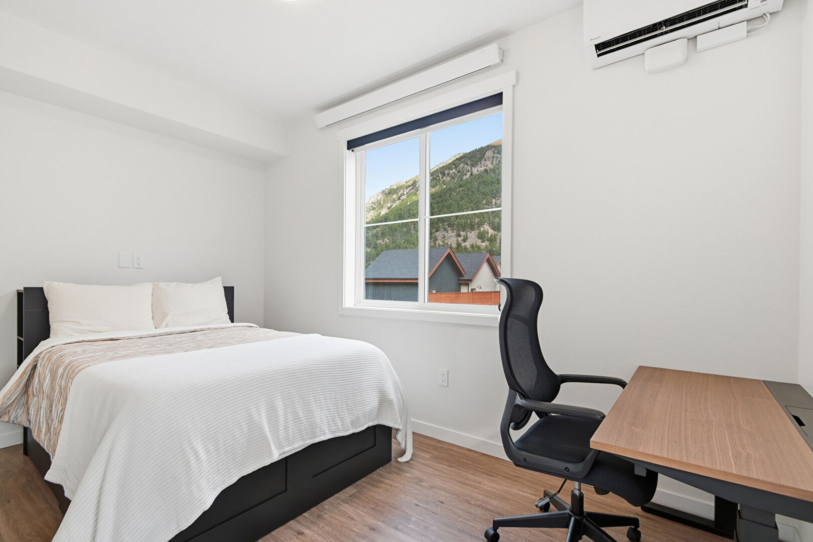 Barn Door, Baseboards Wall, Drywall, Mountain View, Natural Light, Office Area, Wall Mounted Ac, Wood Finish Floor, Barn Door, Ensuite Bathroom, Natural Light