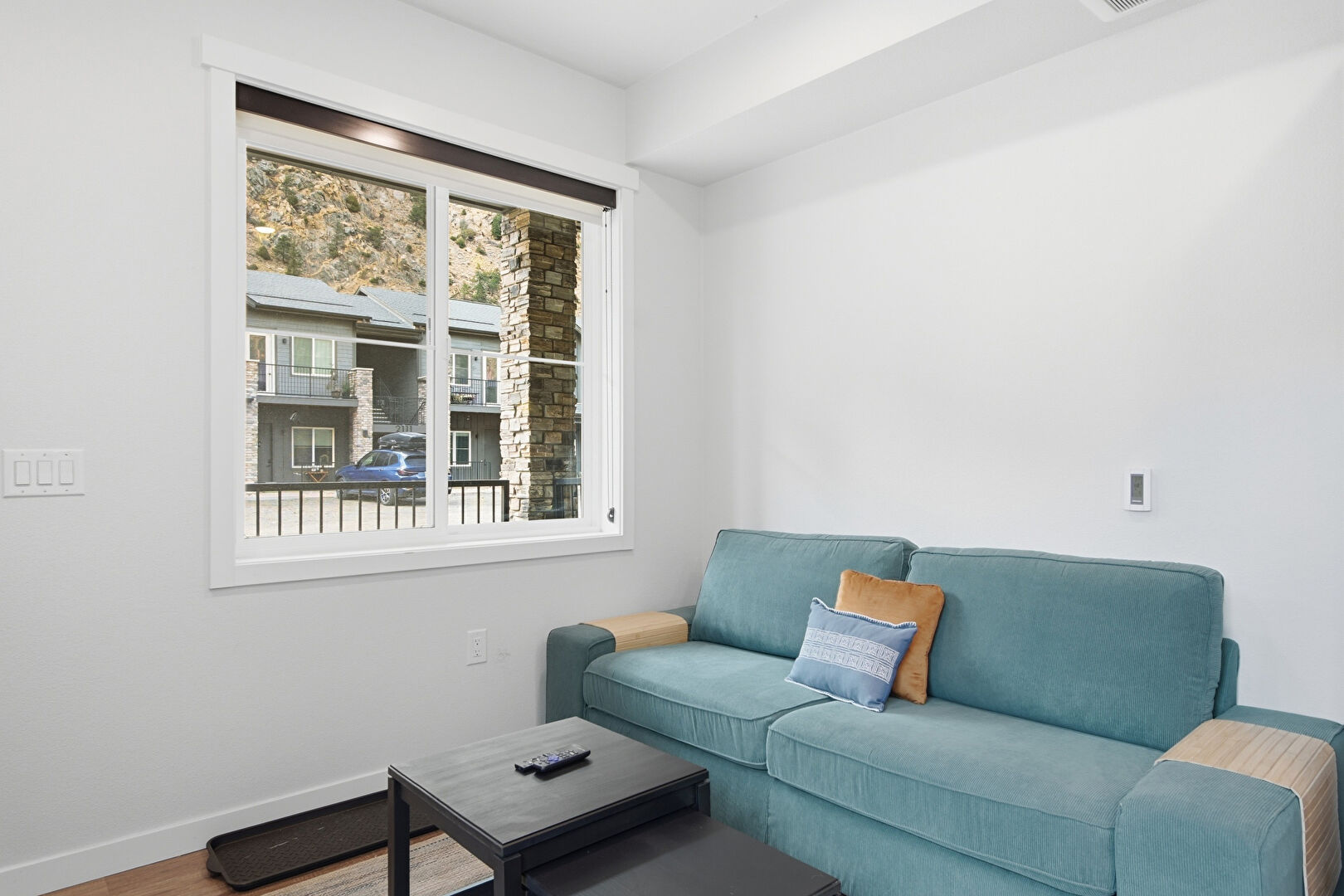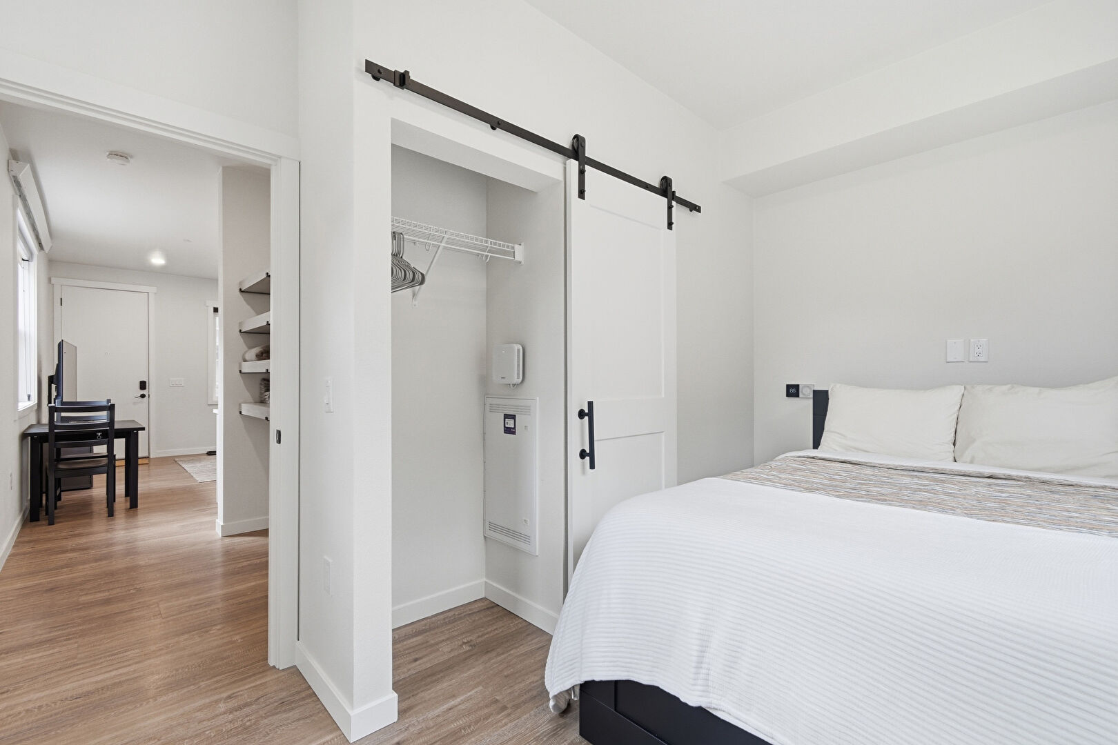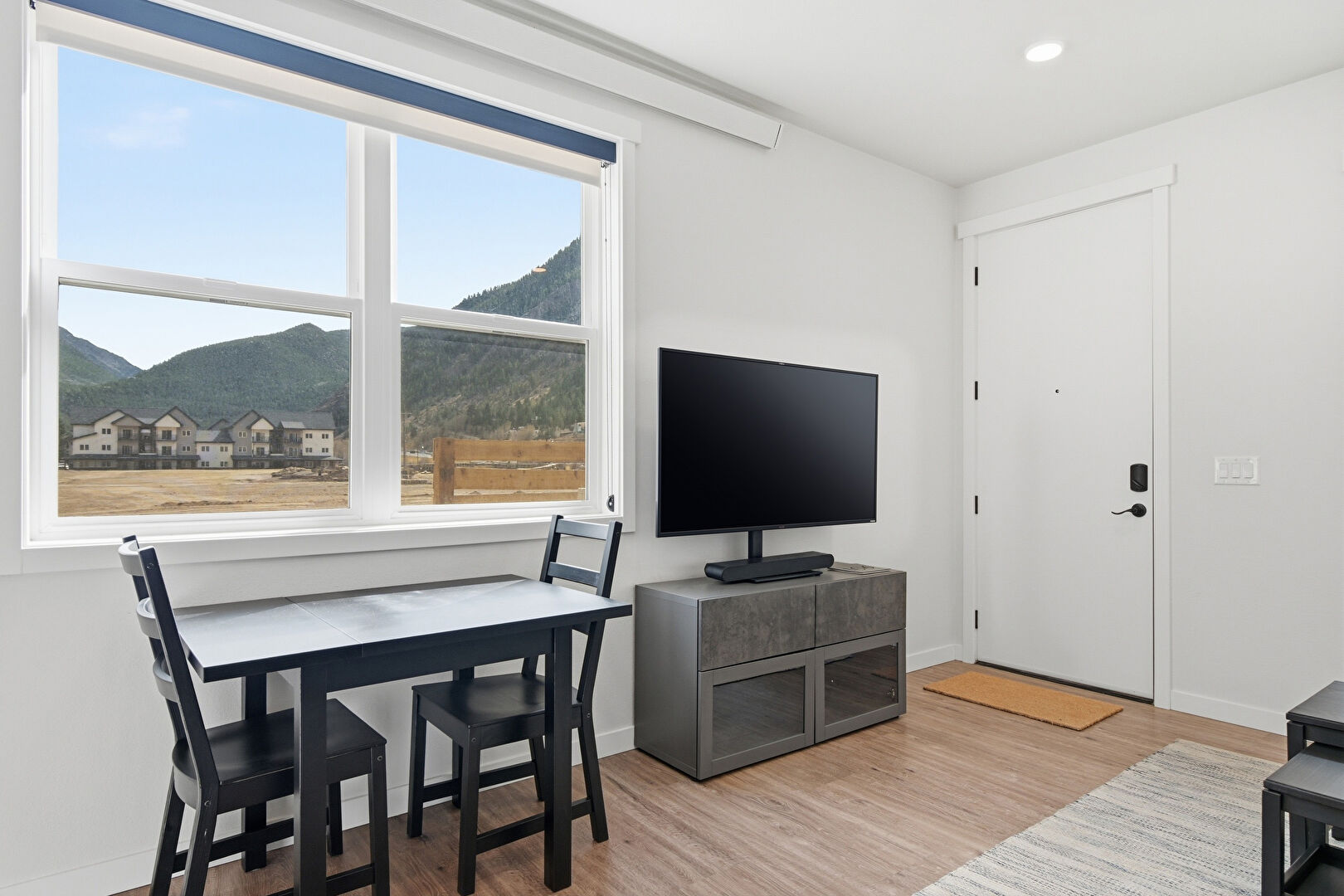 Barn Door, Baseboards Wall, Drywall, Mountain View, Natural Light, Office Area, Wall Mounted Ac, Wood Finish Floor, Barn Door, Ensuite Bathroom, Natural Light