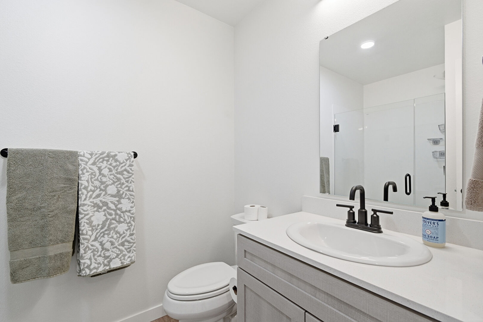 Baseboards Wall, Full Bathroom, Recessed Lighting, Vanity, Drywall