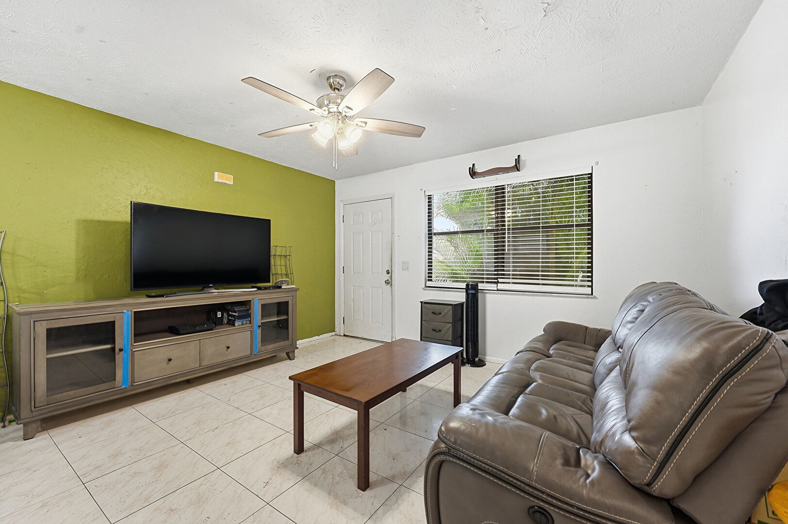 Baseboards Wall, Ceiling Fan, Drywall, Office Area, Textured Ceiling, Tile Floor, Vent, Closet, Natural Light