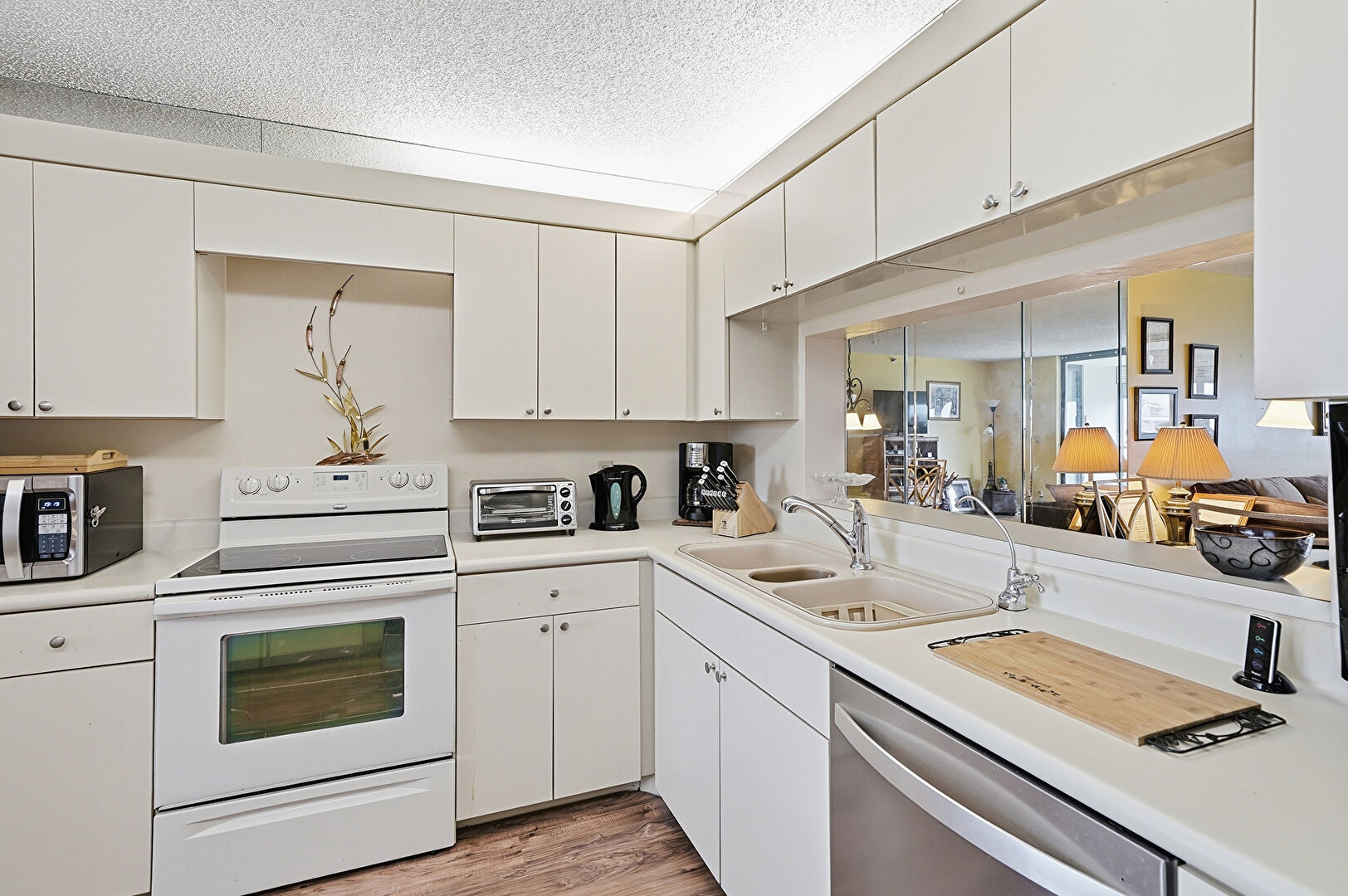 Baseboards Wall, Drywall, Natural Light, Opens To Living Area, Textured Ceiling, Toaster, Wood Finish Floor, Drywall, Pass Through Window