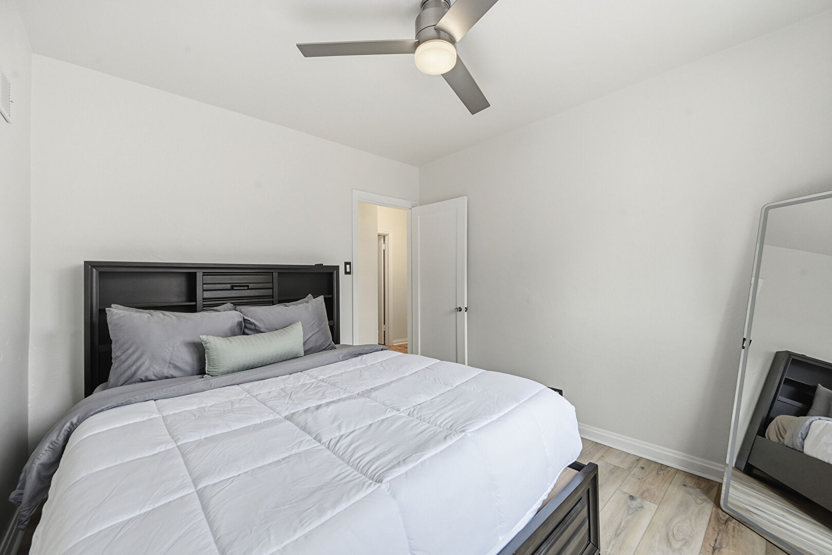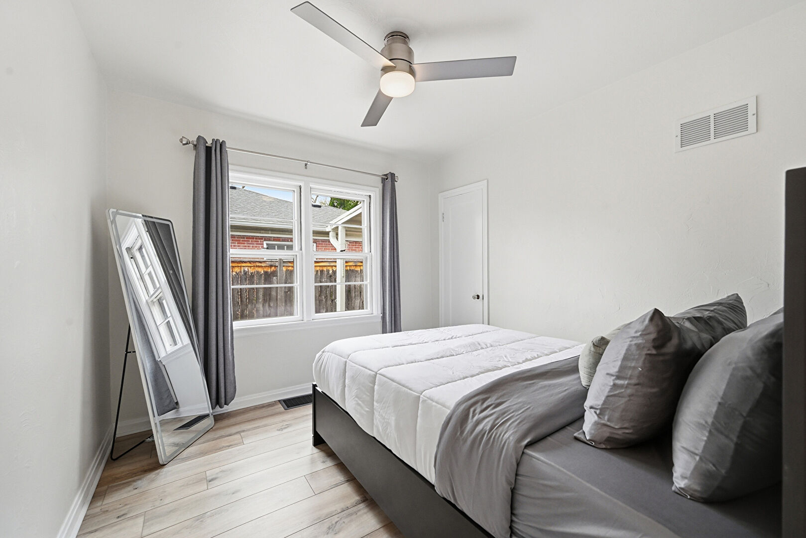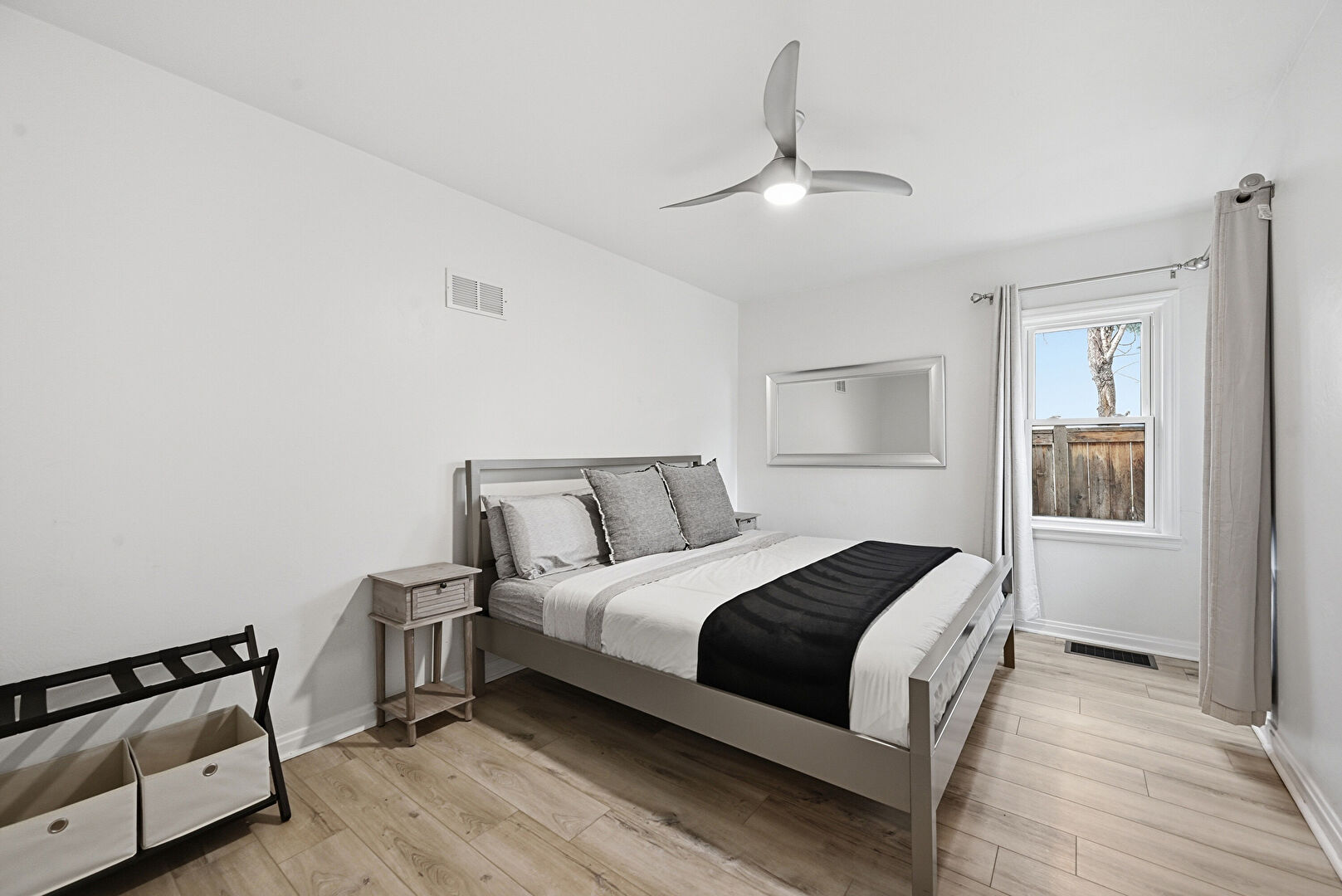 Baseboards Wall, Ceiling Fan, Drywall, Natural Light, Vent, Wood Finish Floor, Baseboards Wall, Vent