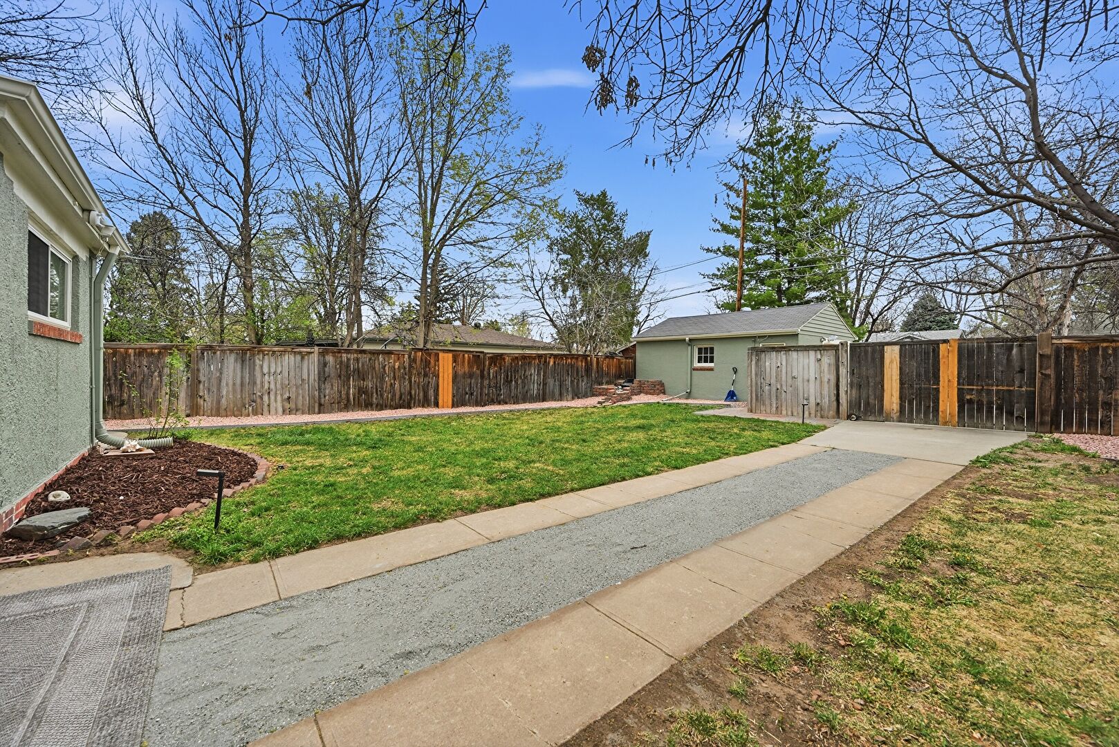 Driveway, Fence, Garage, Horizontal Siding, Outdoor Structure, Parking Pad, Stucco Siding, Gate