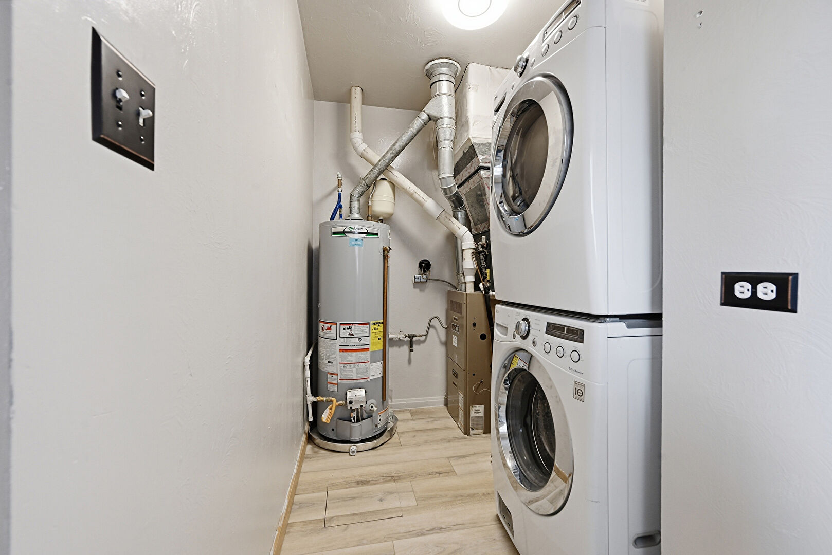 Baseboards Wall, Drywall, Water Heater, Wood Finish Floor, Laundry