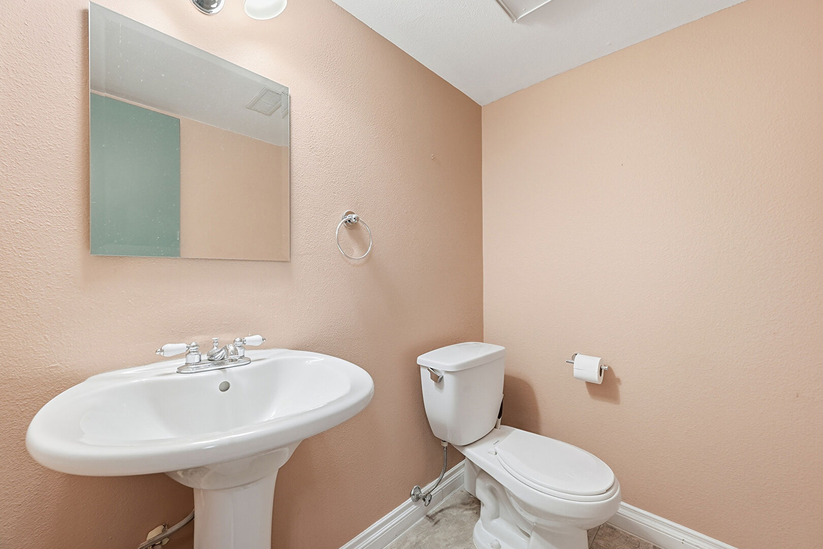 Baseboards Wall, Combined Bath Shower, Drywall, Textured Wall, Vanity, Full Bathroom, Half Bathroom