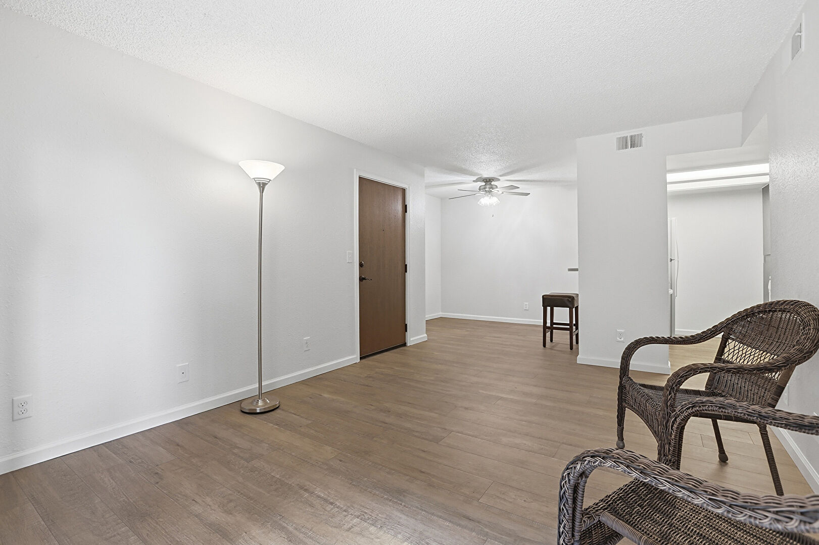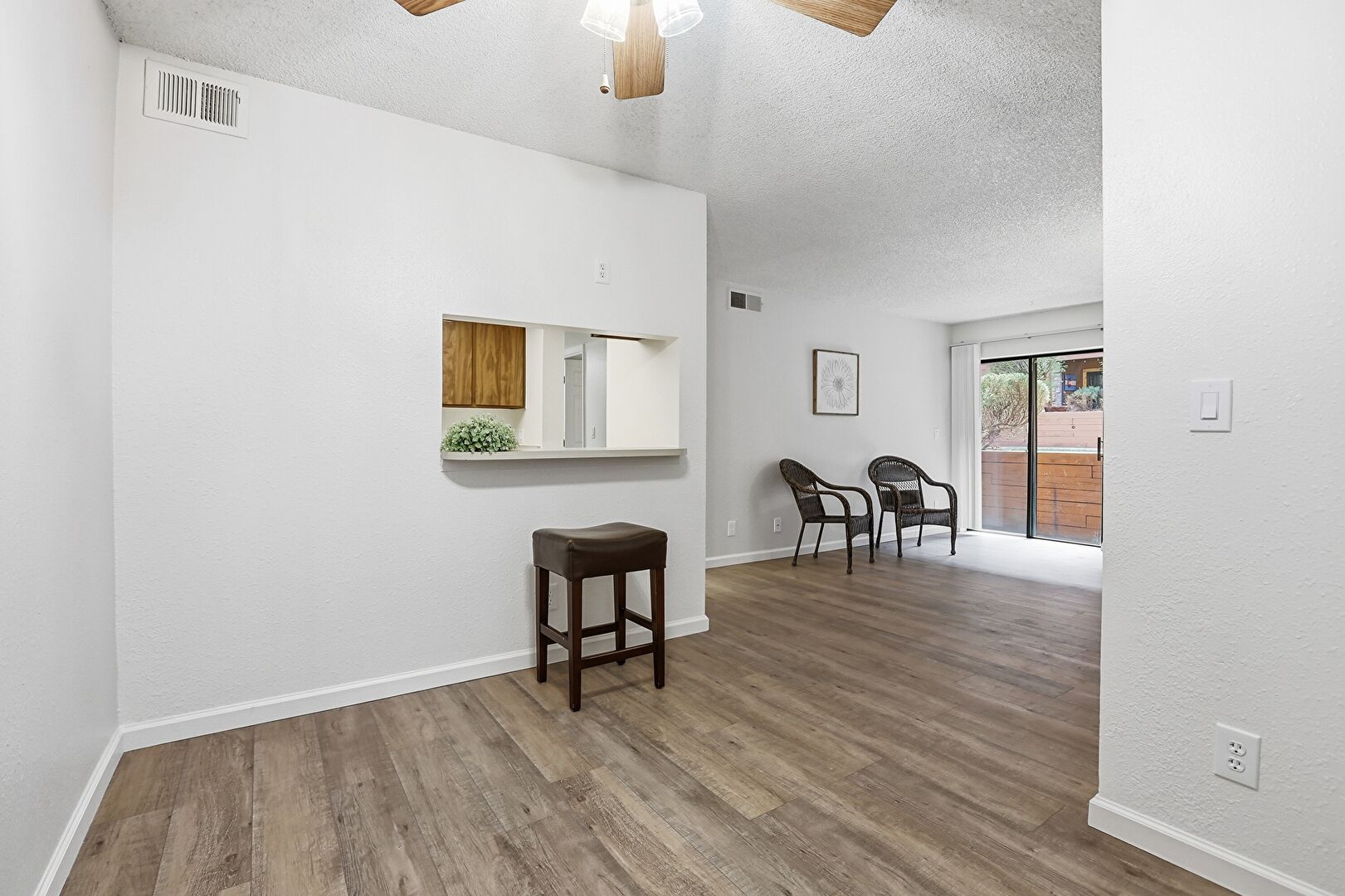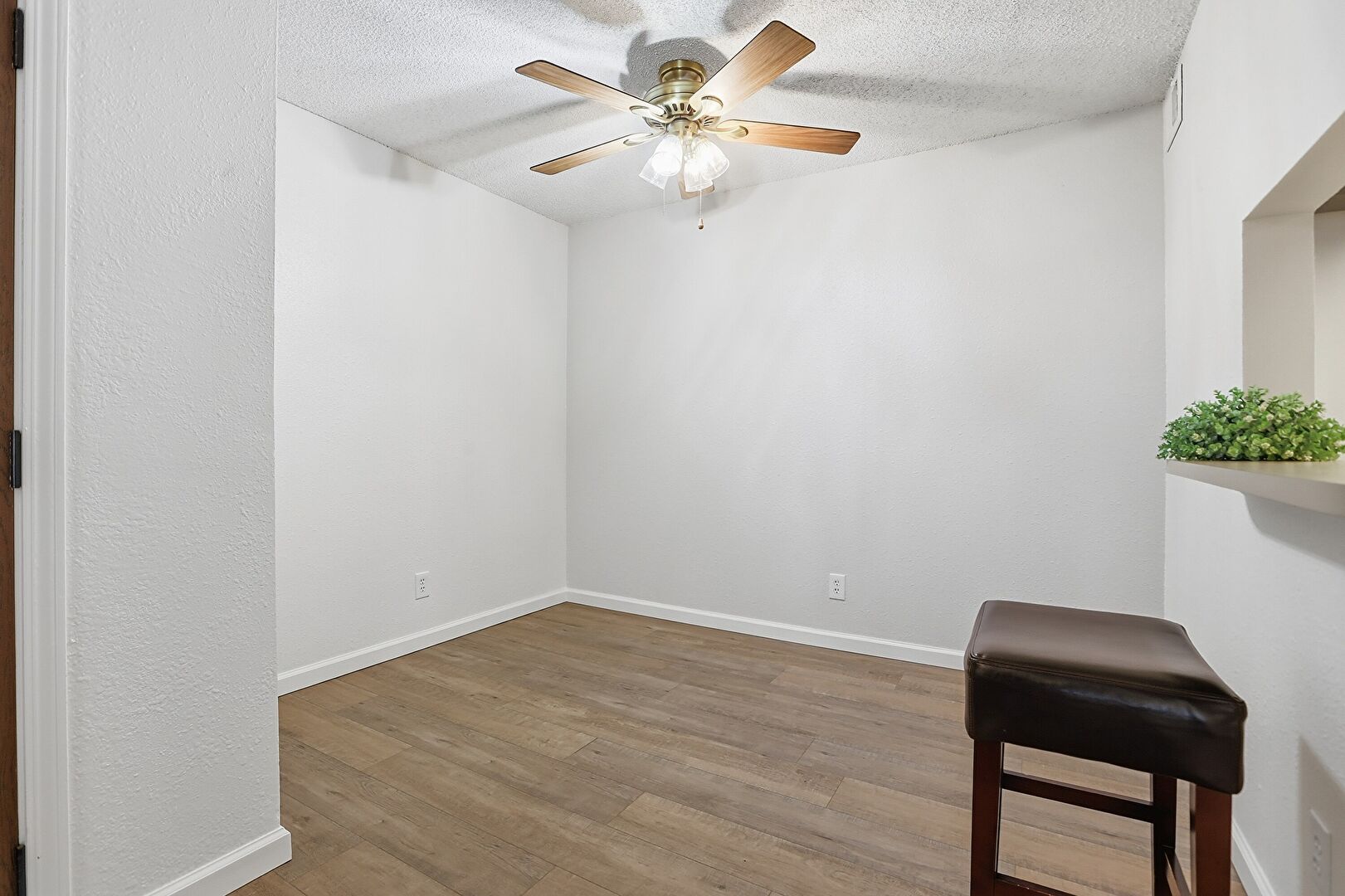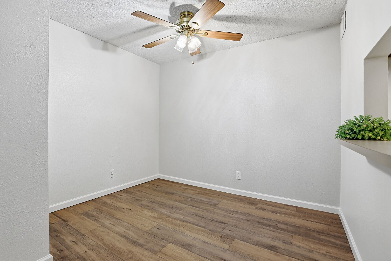 Baseboards Wall, Ceiling Fan, Drywall, Natural Light, Textured Ceiling, Textured Wall, Vent, Wood Finish Floor, Baseboards Wall, Drywall, Textured Ceiling, Wood Finish Floor