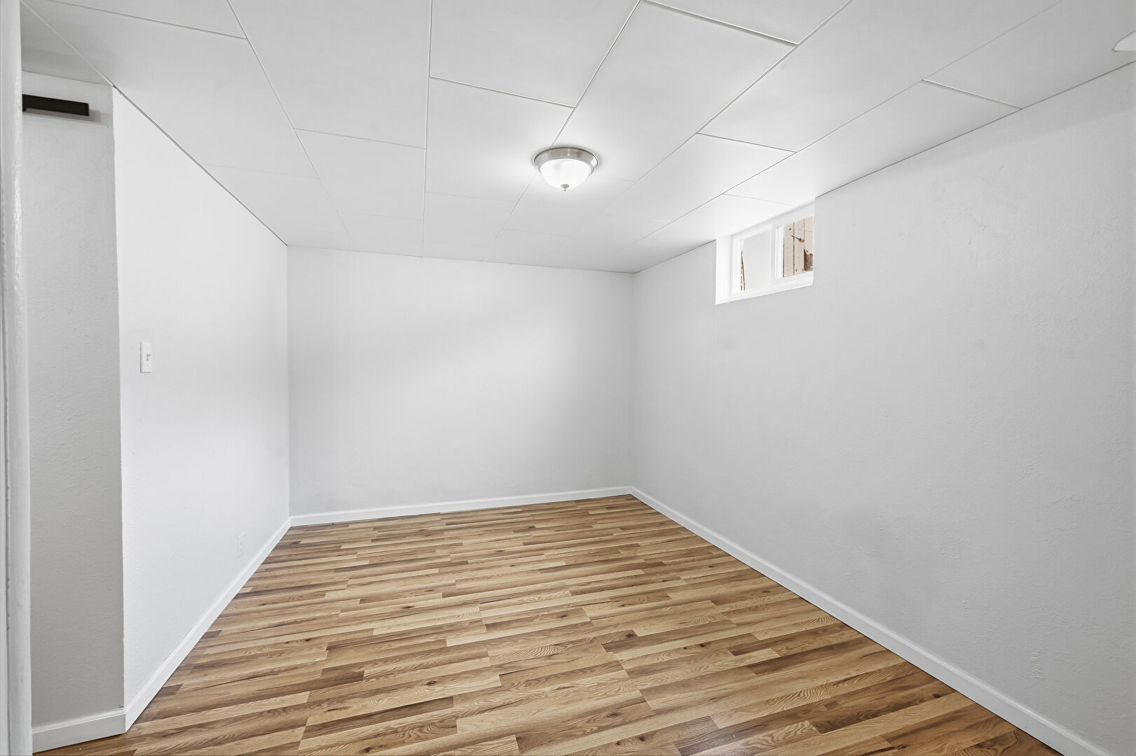 Arched Walkways, Baseboards Wall, Basement, Drywall, Fire Extinguisher, Natural Light, Vinyl Floor, Washer Hookup, Laundry