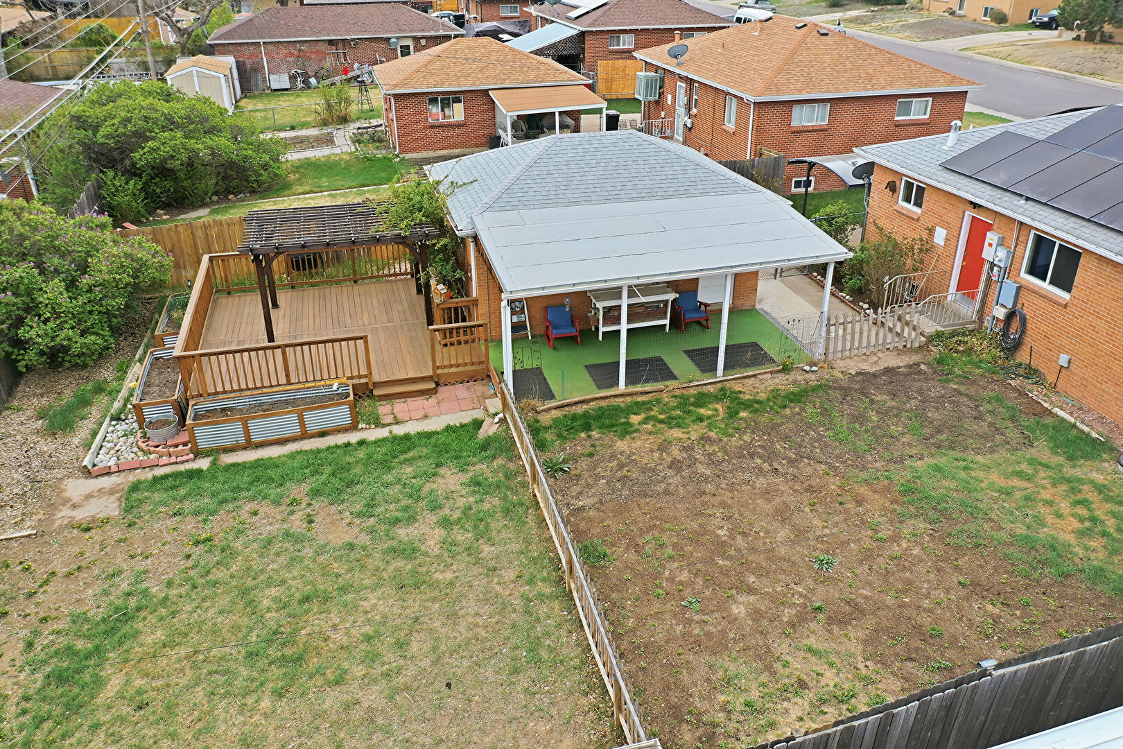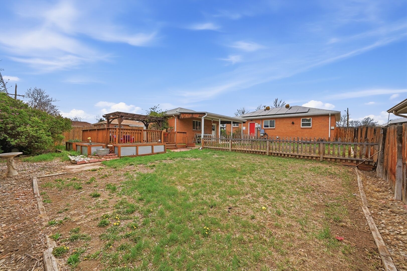 Deck, Fence, Garden, Lawn, Patio, Pergola, Residential View, Satellite Dish, Deck, Fence, Garden, Pergola