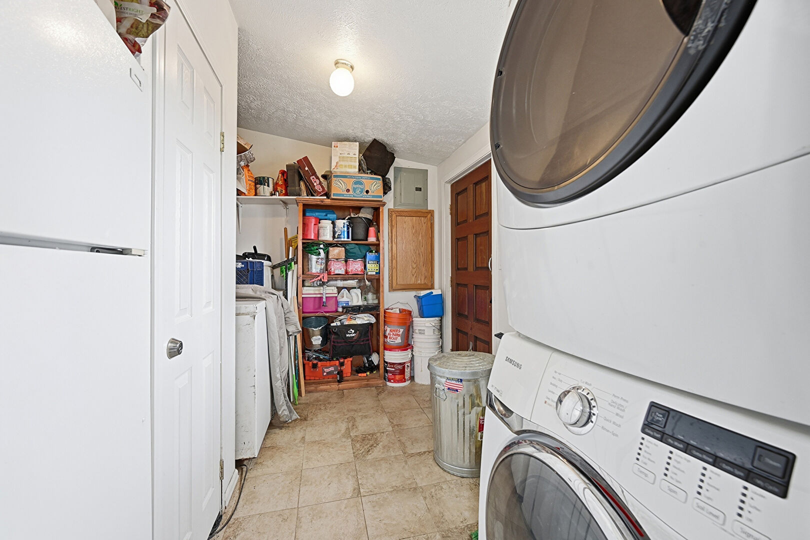 Laundry, Textured Ceiling, Tile Floor, Drywall