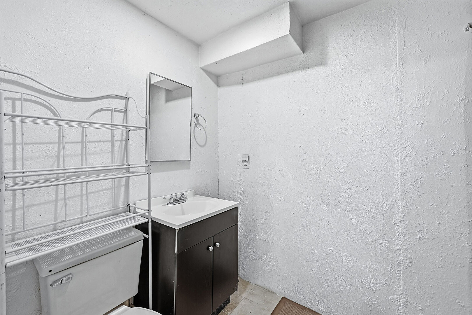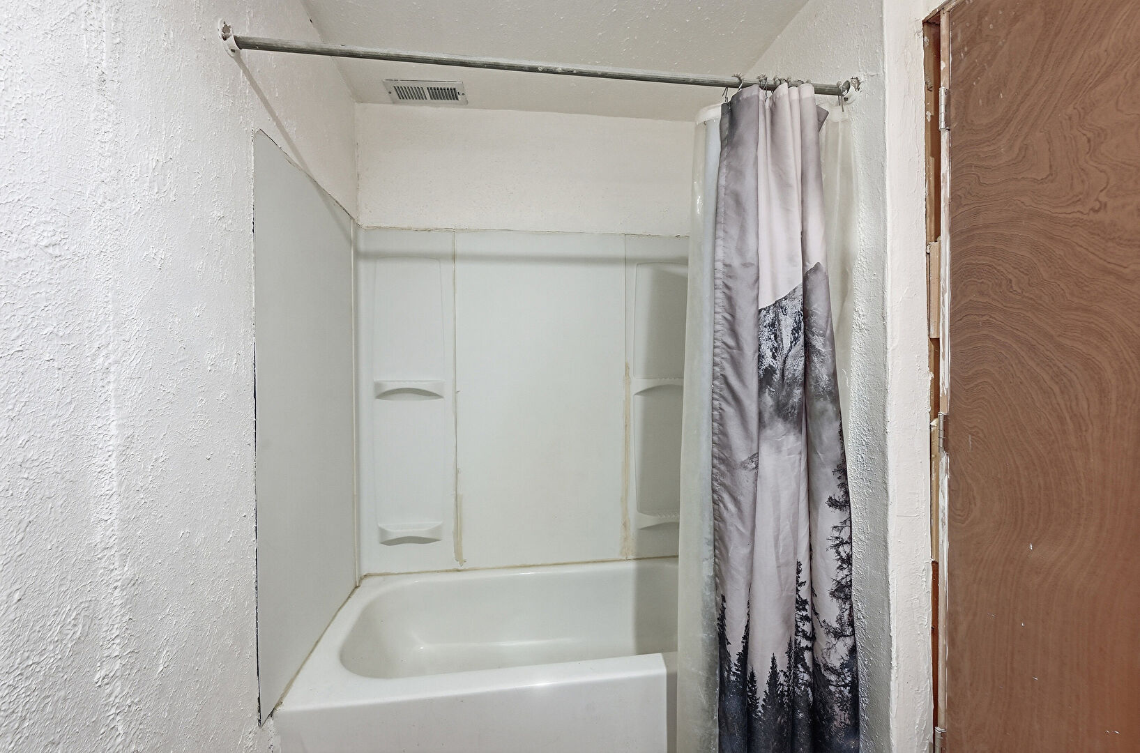 Combined Bath Shower, Drywall, Textured Ceiling, Textured Wall, Vanity, Vent, Full Bathroom, Half Bathroom