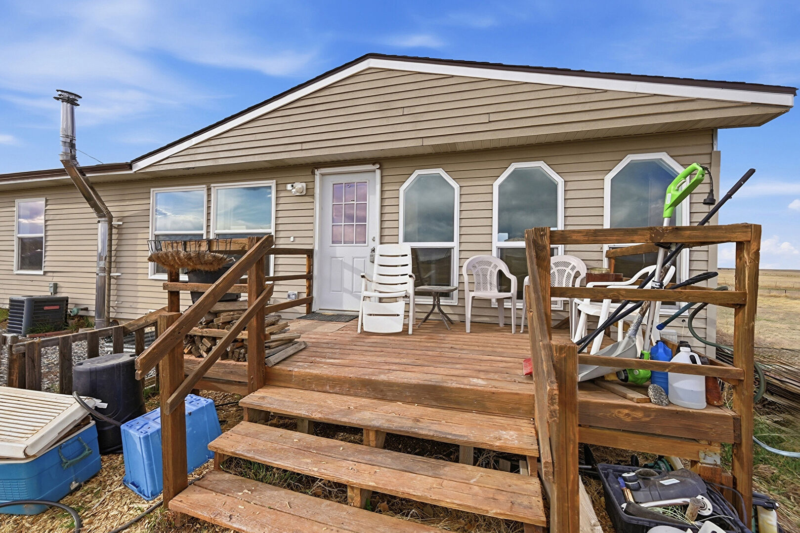 Concrete Foundation, Deck, Downspout, Fence, Gutters, Horizontal Siding, Outdoor Structure, Rural View, Shed, Central Ac, Concrete Foundation, Deck, Downspout, Fence, Stoop