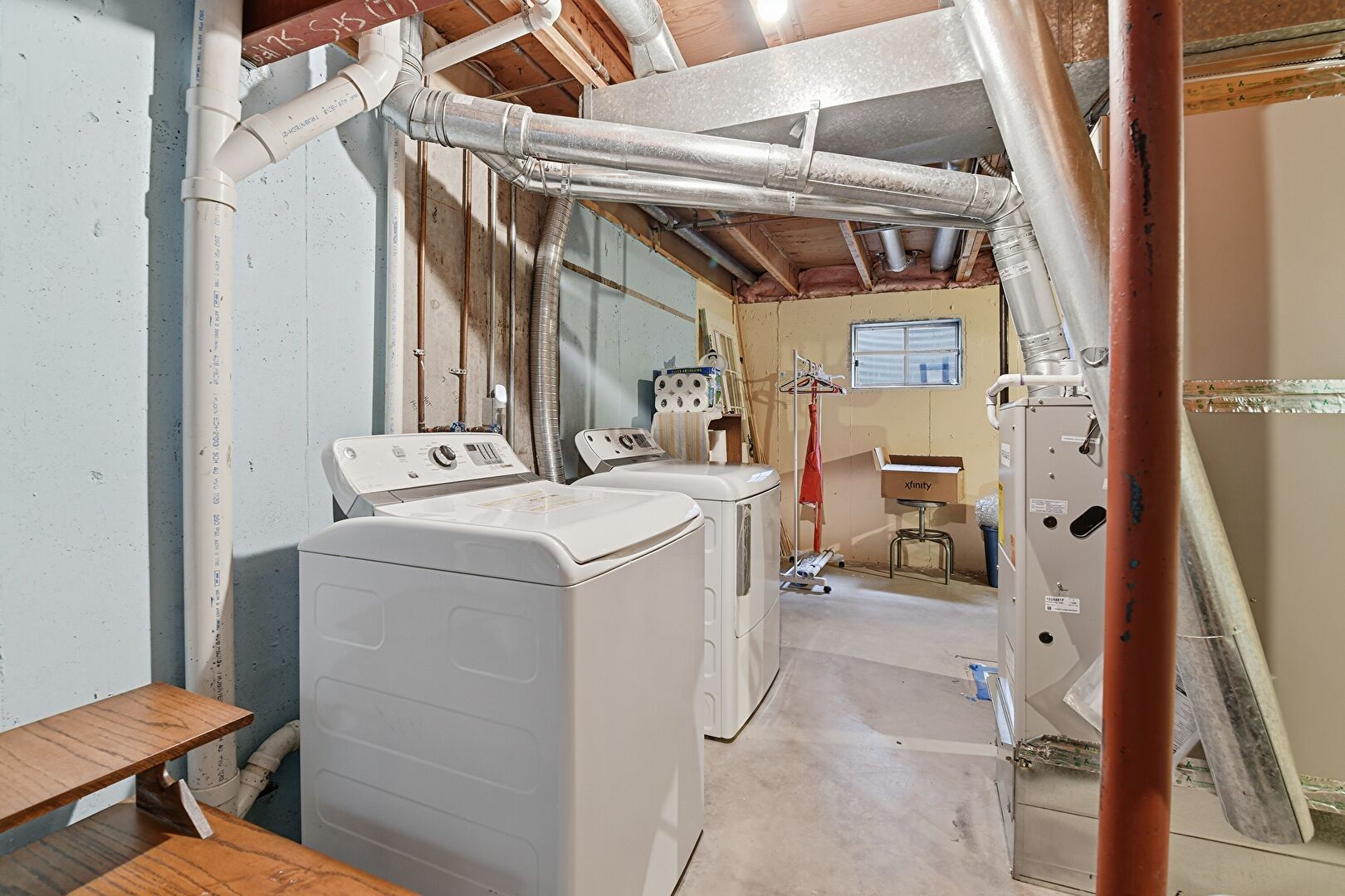 Basement, Furnace, Laundry, Natural Light, Concrete Floor