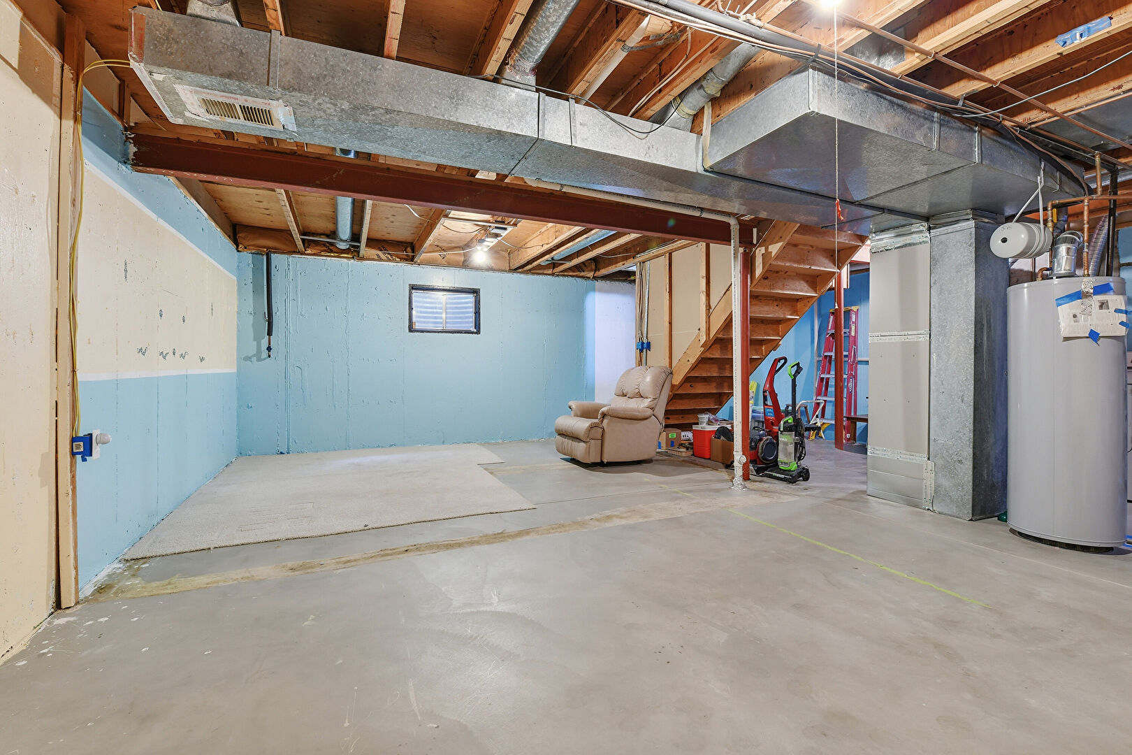 Basement, Concrete Foundation, Stairs, Vent, Water Heater