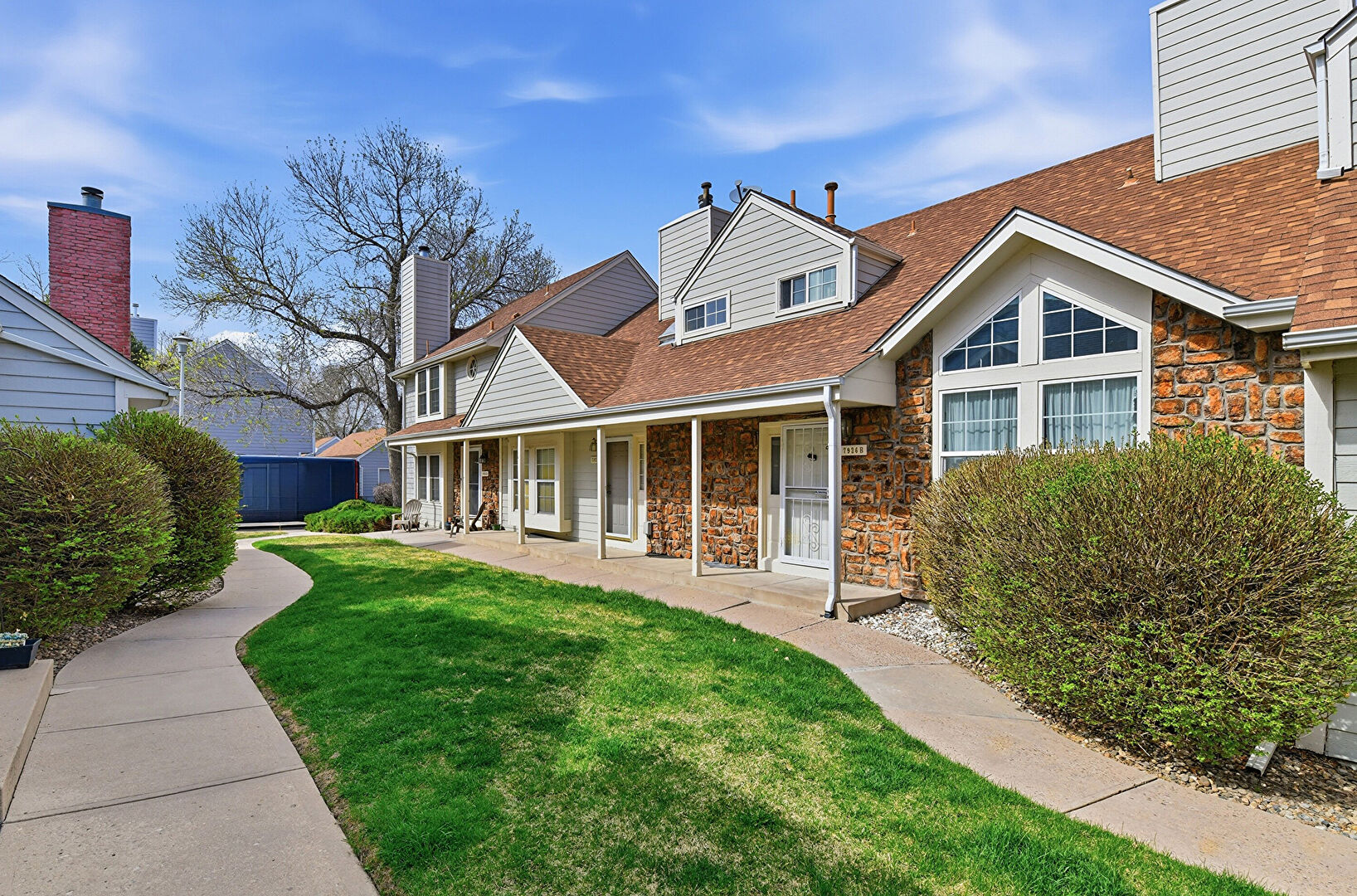 Chimney, Concrete Foundation, Dormer Roof, Downspout, Gutters, Horizontal Siding, Lawn, Porch, Satellite Dish, Shingle Roof, Stone Siding, Downspout, Lawn