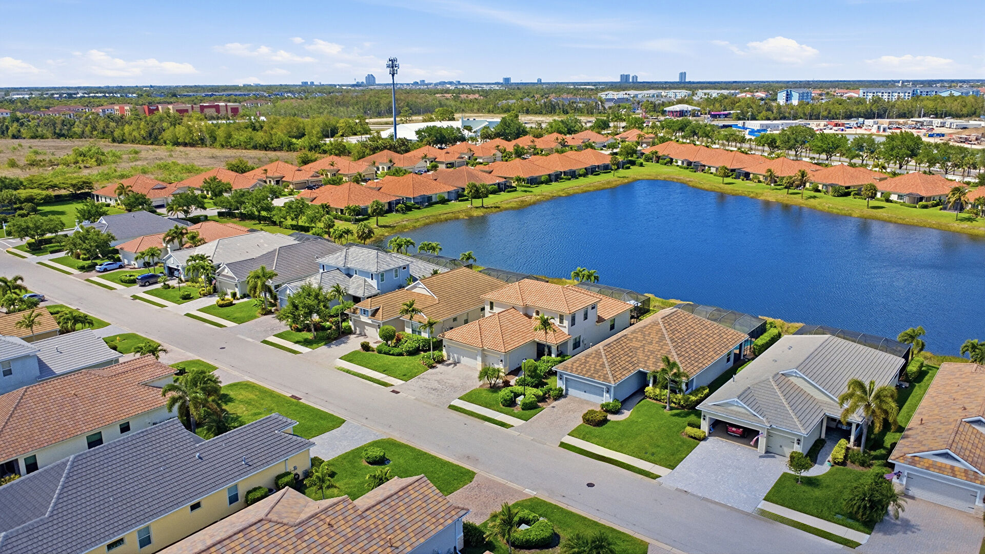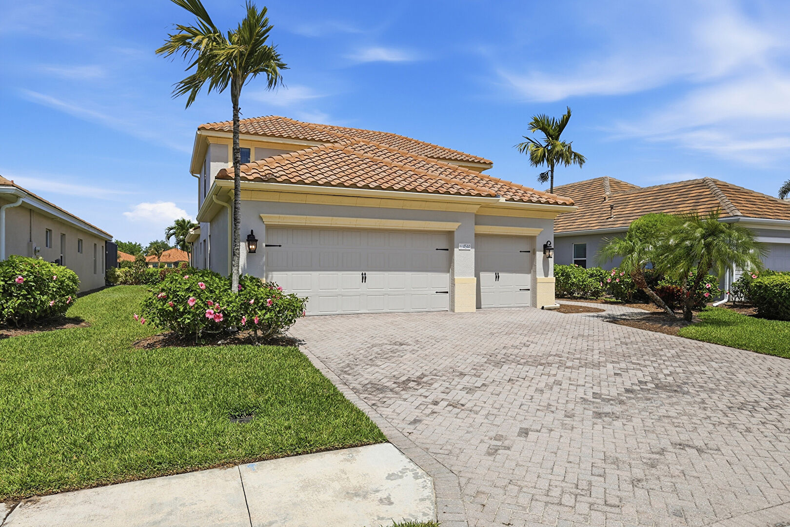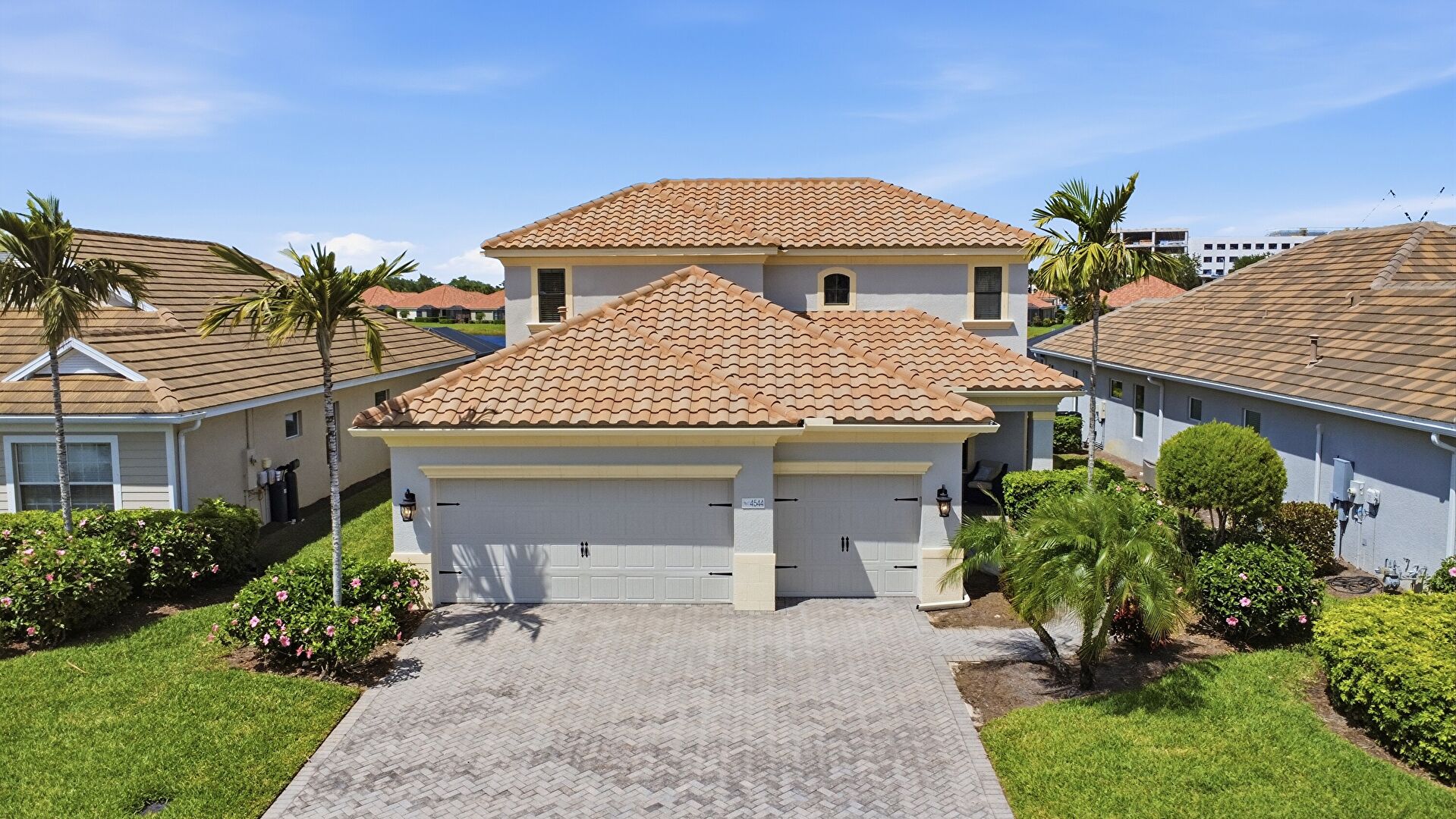 Driveway, Lawn, Residential View, Tile Roof, Water View, Residential View, Stucco Siding, Water View