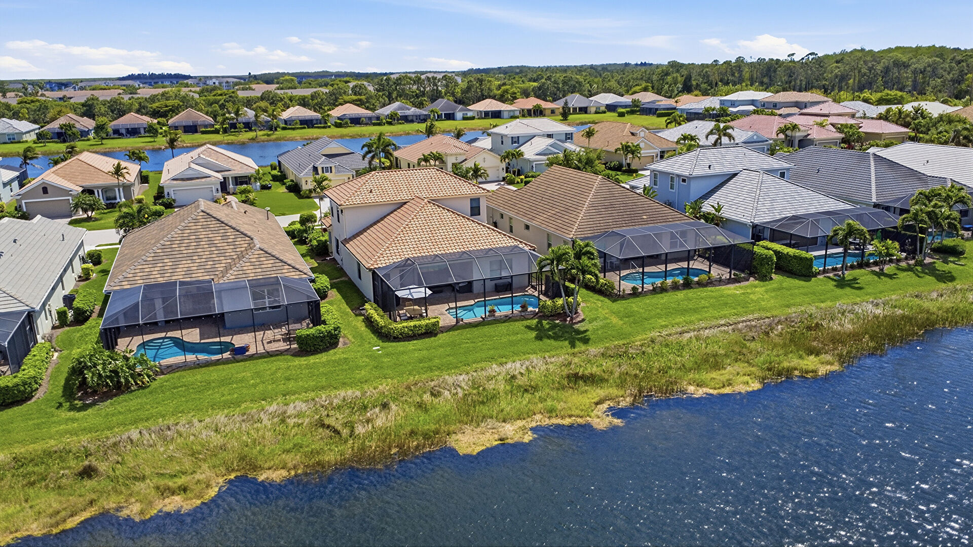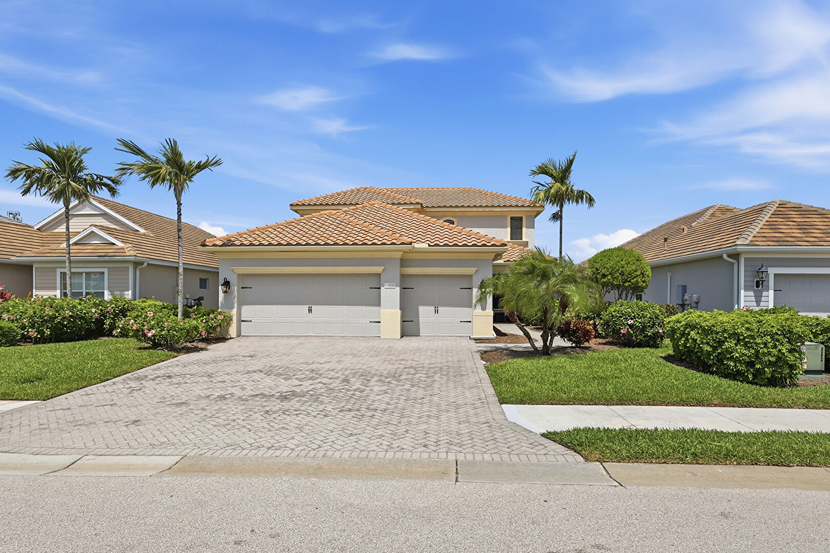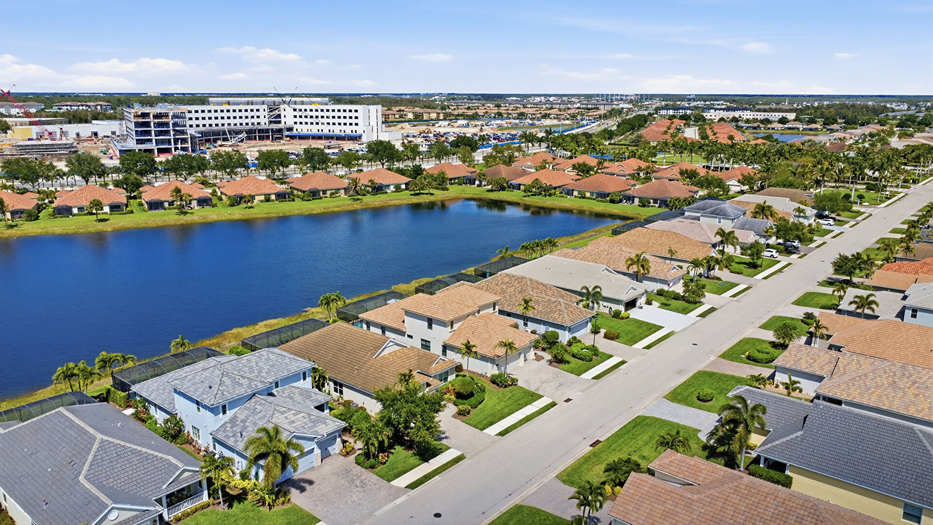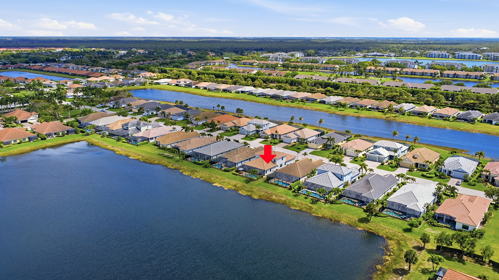 Driveway, Lawn, Residential View, Tile Roof, Water View, Residential View, Stucco Siding, Water View