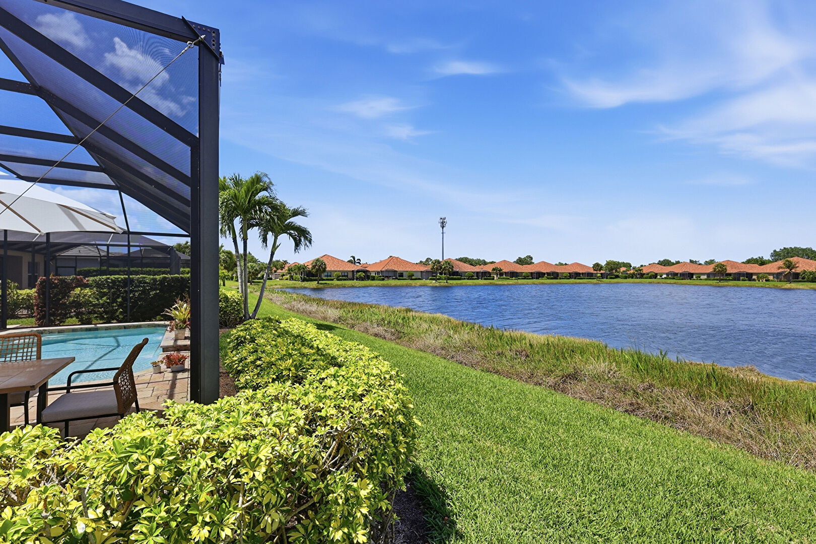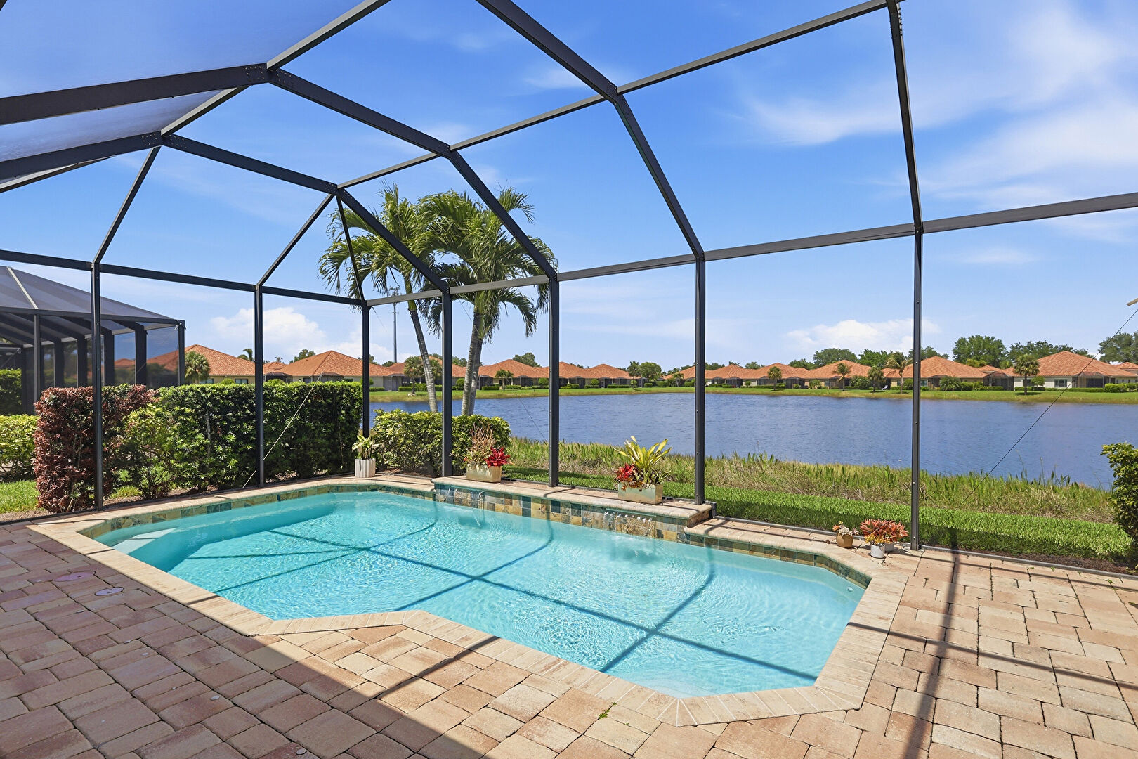 Grill, Lanai, Outdoor Living Space, Patio, Pool, Pool Water Feature, Residential View, Sunroom, Water View, Waterfront, Lanai, Outdoor Dining Area, Patio, Sunroom, Waterfront