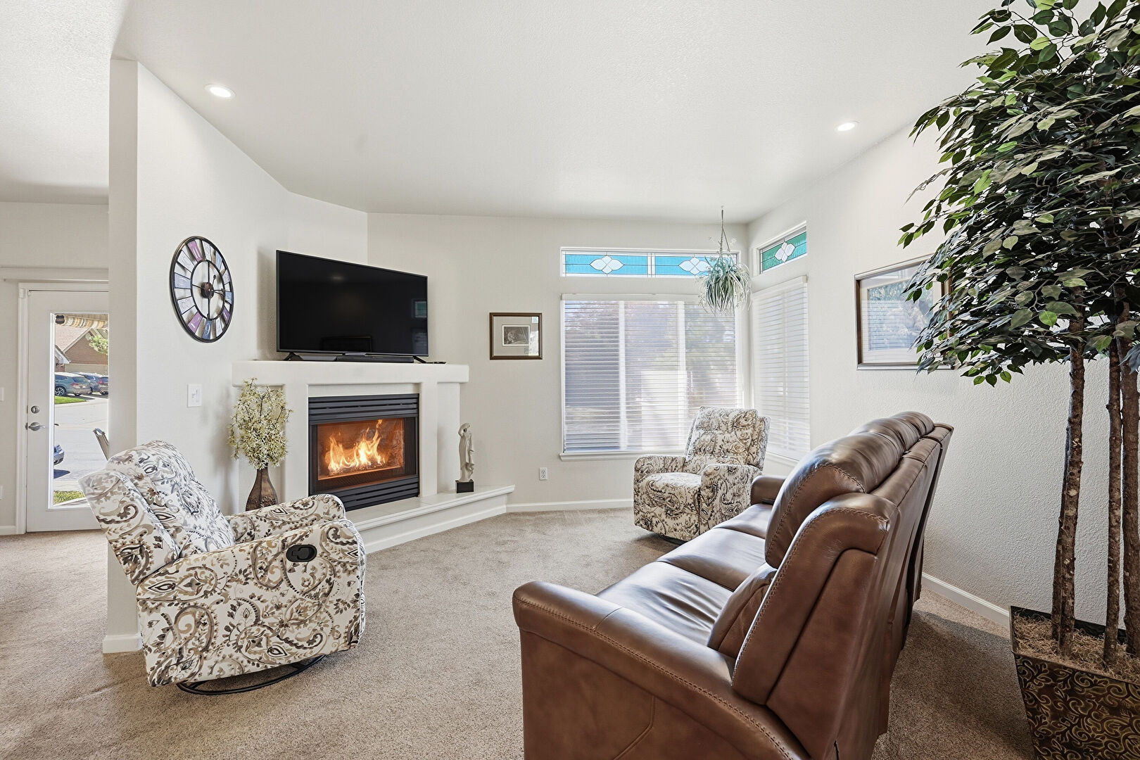 Baseboards Wall, Carpet, Drywall, Fireplace, Natural Light, Notable Chandelier, Recessed Lighting, Drywall, Fireplace