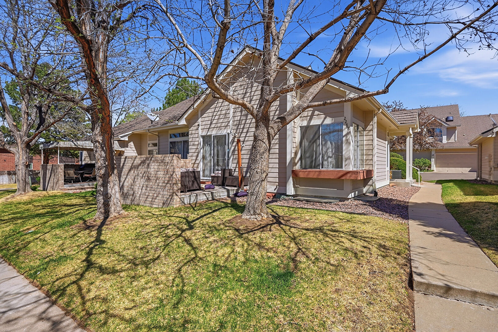 Brick Siding, Concrete Foundation, Downspout, Driveway, Electric Meter, Grill, Gutters, Horizontal Siding, Patio, Stoop, Gutters, Lawn, Outdoor Dining Area