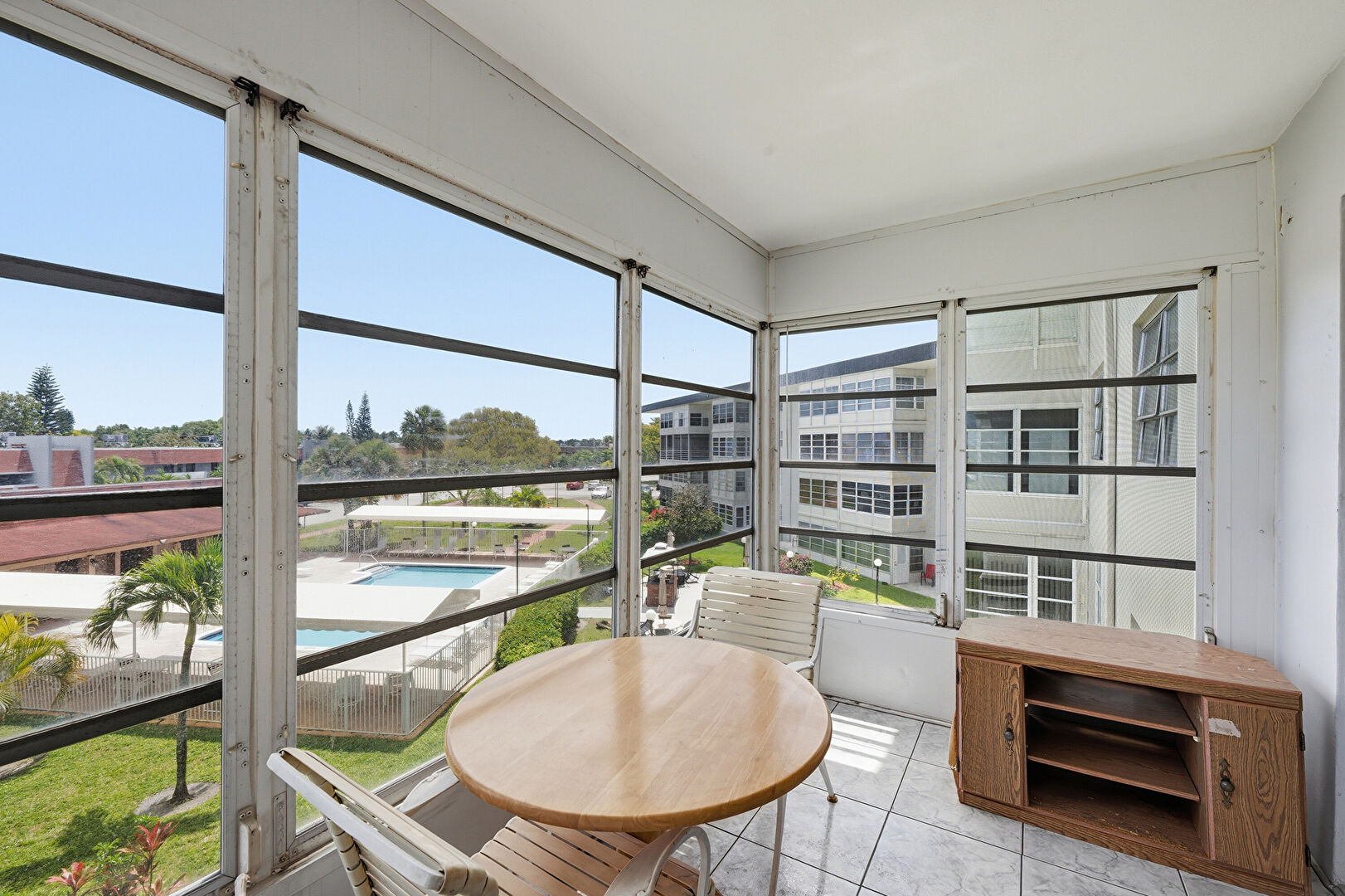 Apartment Complex View, Balcony, Natural Light, Sunroom, Drywall, Natural Light