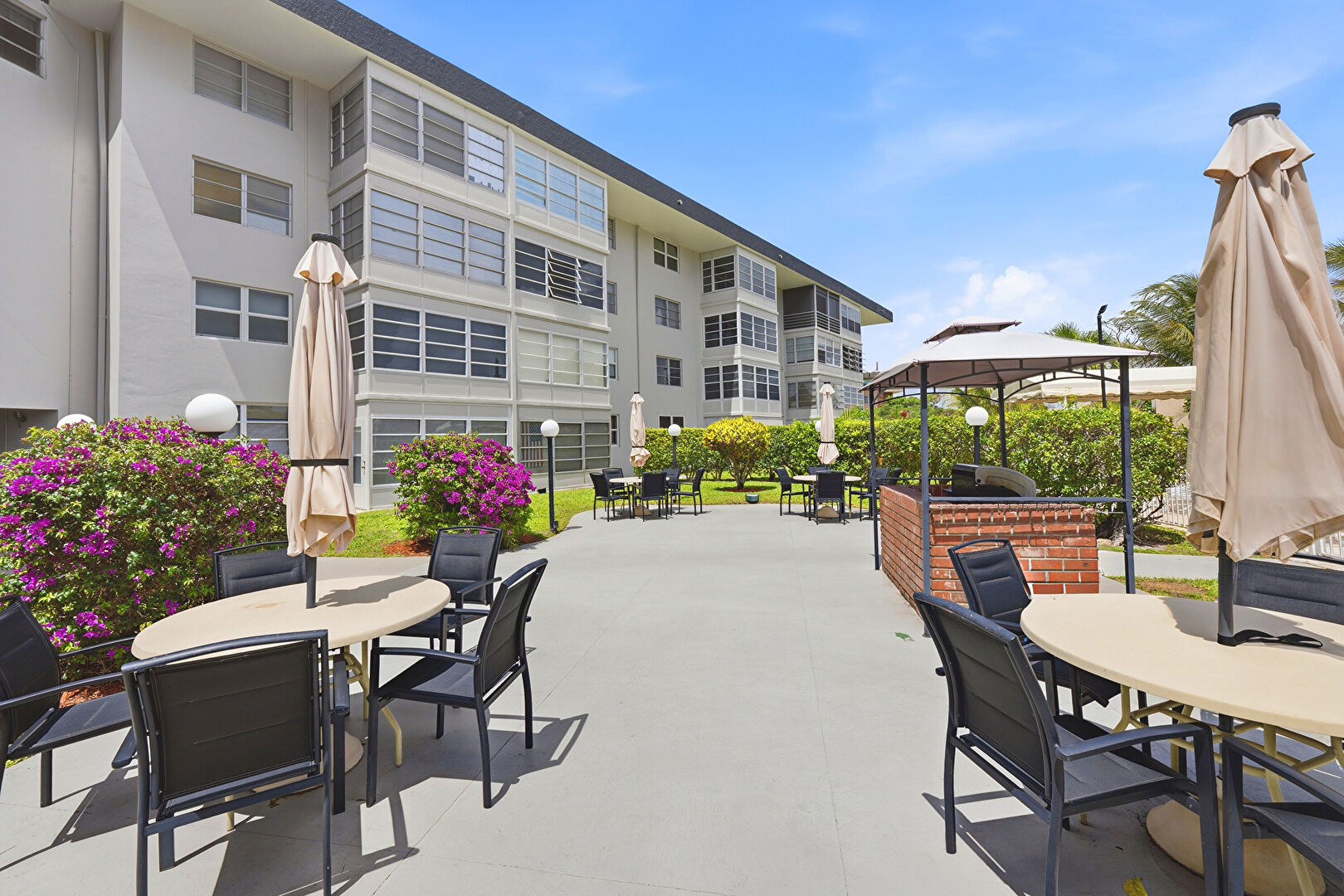 Apartment Complex View, Fence, Gazebo, Grill, Outdoor Dining Area, Patio, Apartment Complex View, Patio