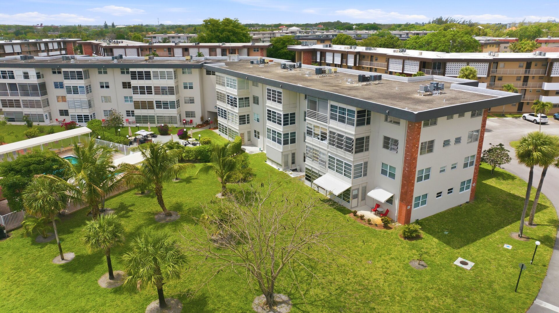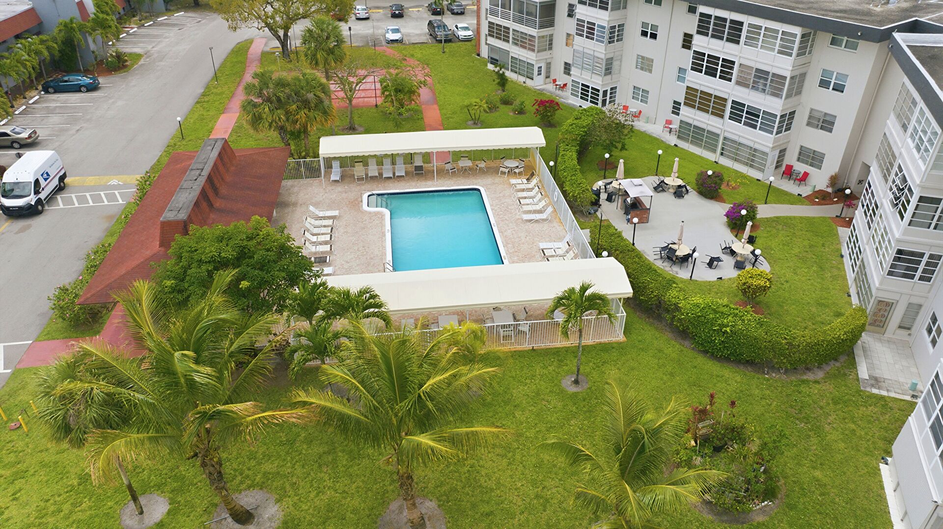 Apartment Complex View, Parking Lot, Apartment Complex View, Awning, Parking Lot