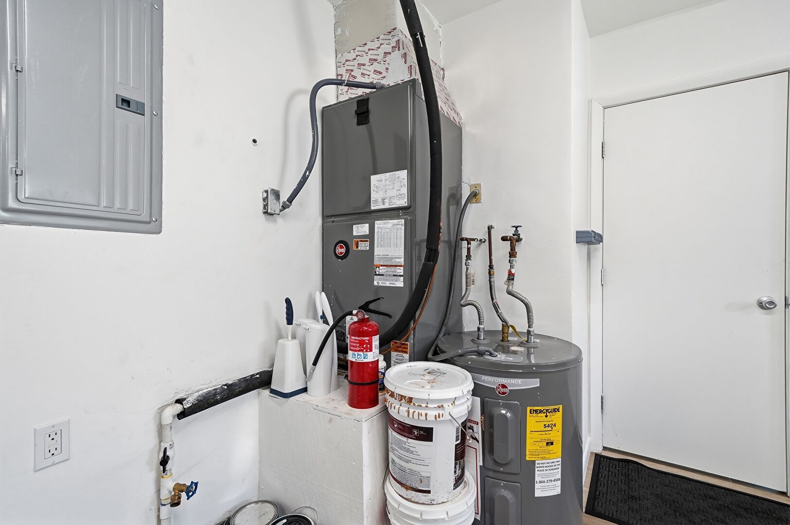 Drywall, Electric Panel, Furnace, Garage, Garage Door Opener, Laundry, Wall Mounted Ac, Water Heater, Electric Panel, Fire Extinguisher, Garage Door Opener