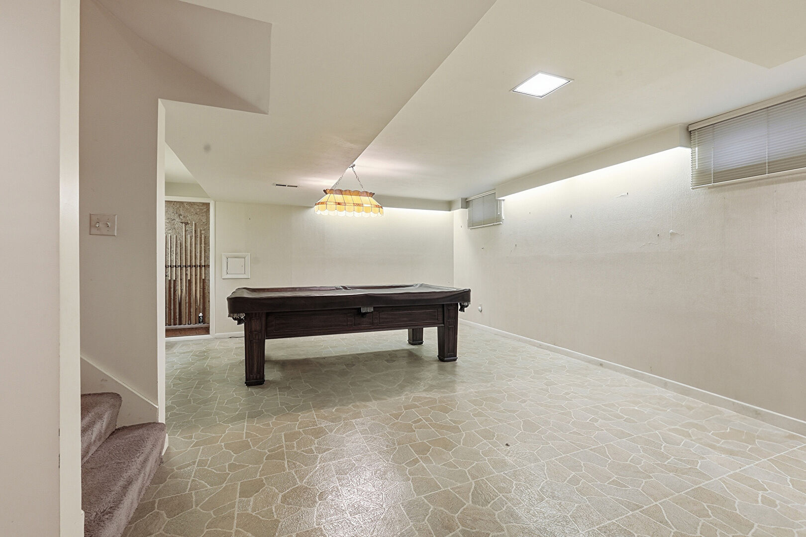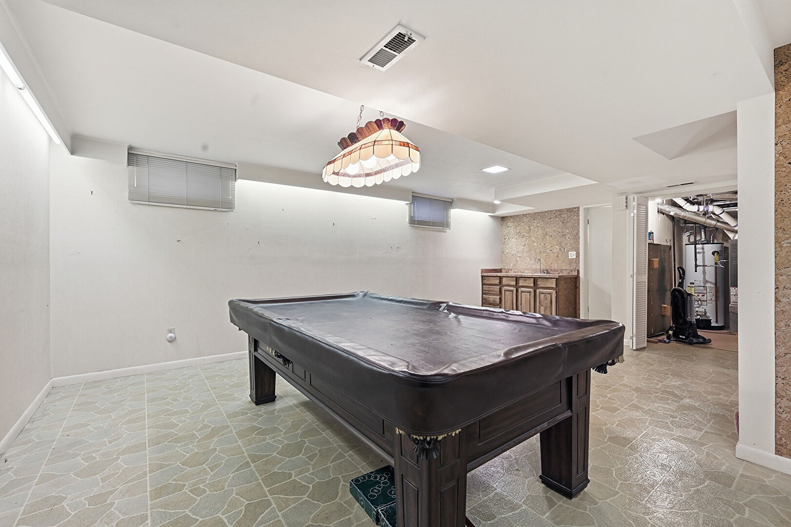 Baseboards Wall, Basement, Billiards, Stone Finish Floor, Vent, Water Heater, Drywall