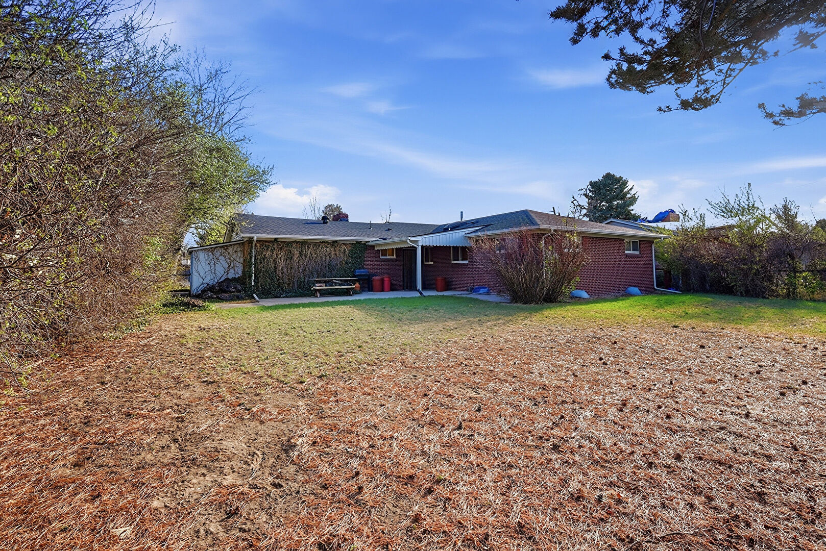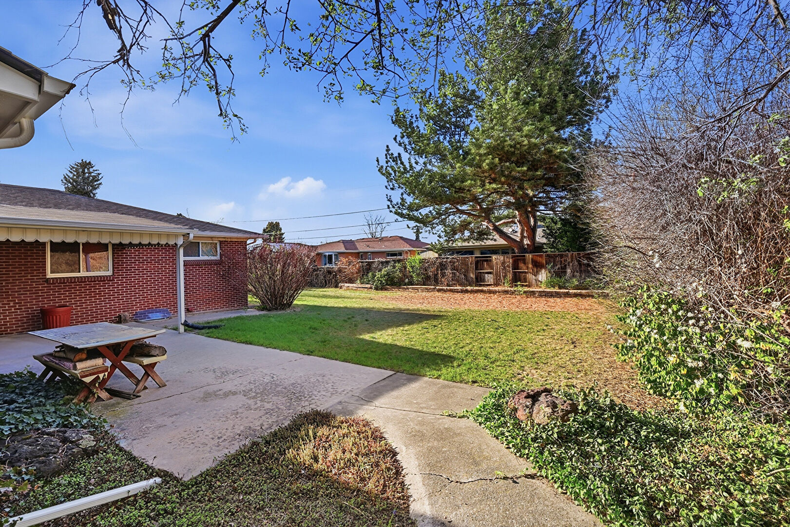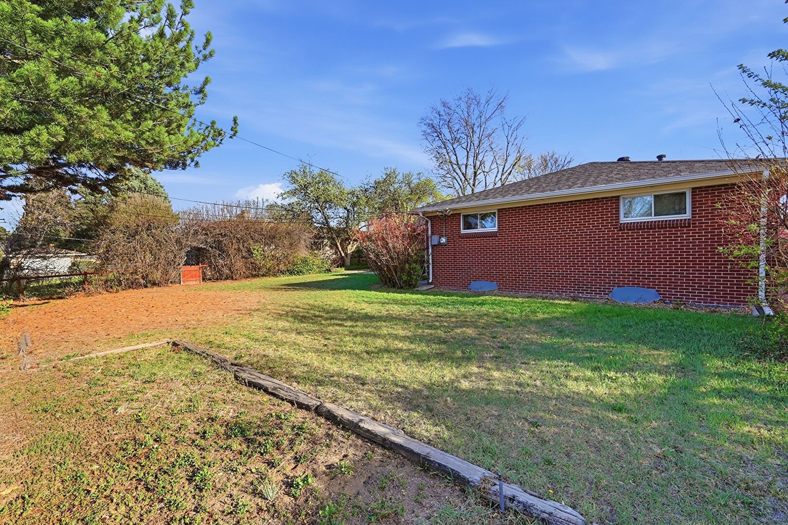 Brick Siding, Chimney, Downspout, Lawn, Patio, Electric Meter, Fence, Gutters