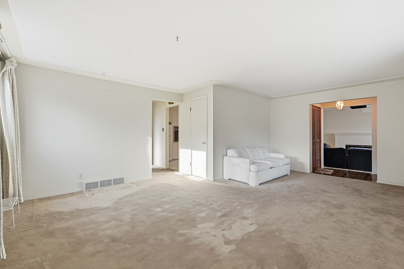 Baseboards Wall, Carpet, Crown Molding, Drywall, Fireplace, Natural Light, Vent, Baseboards Wall, Carpet, Fireplace