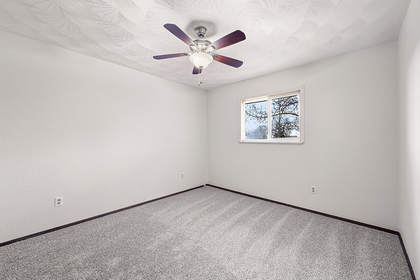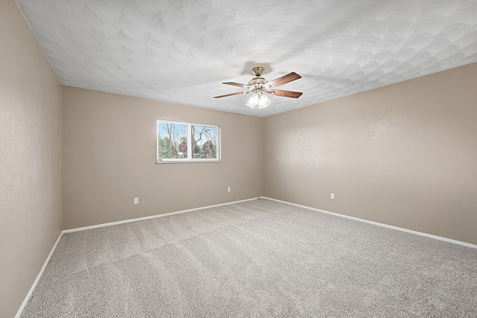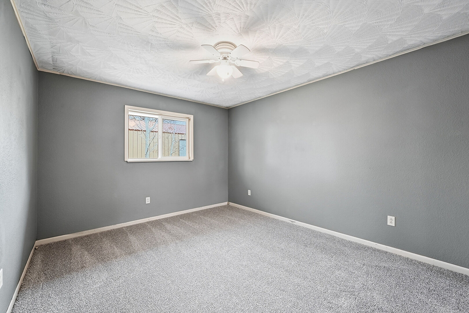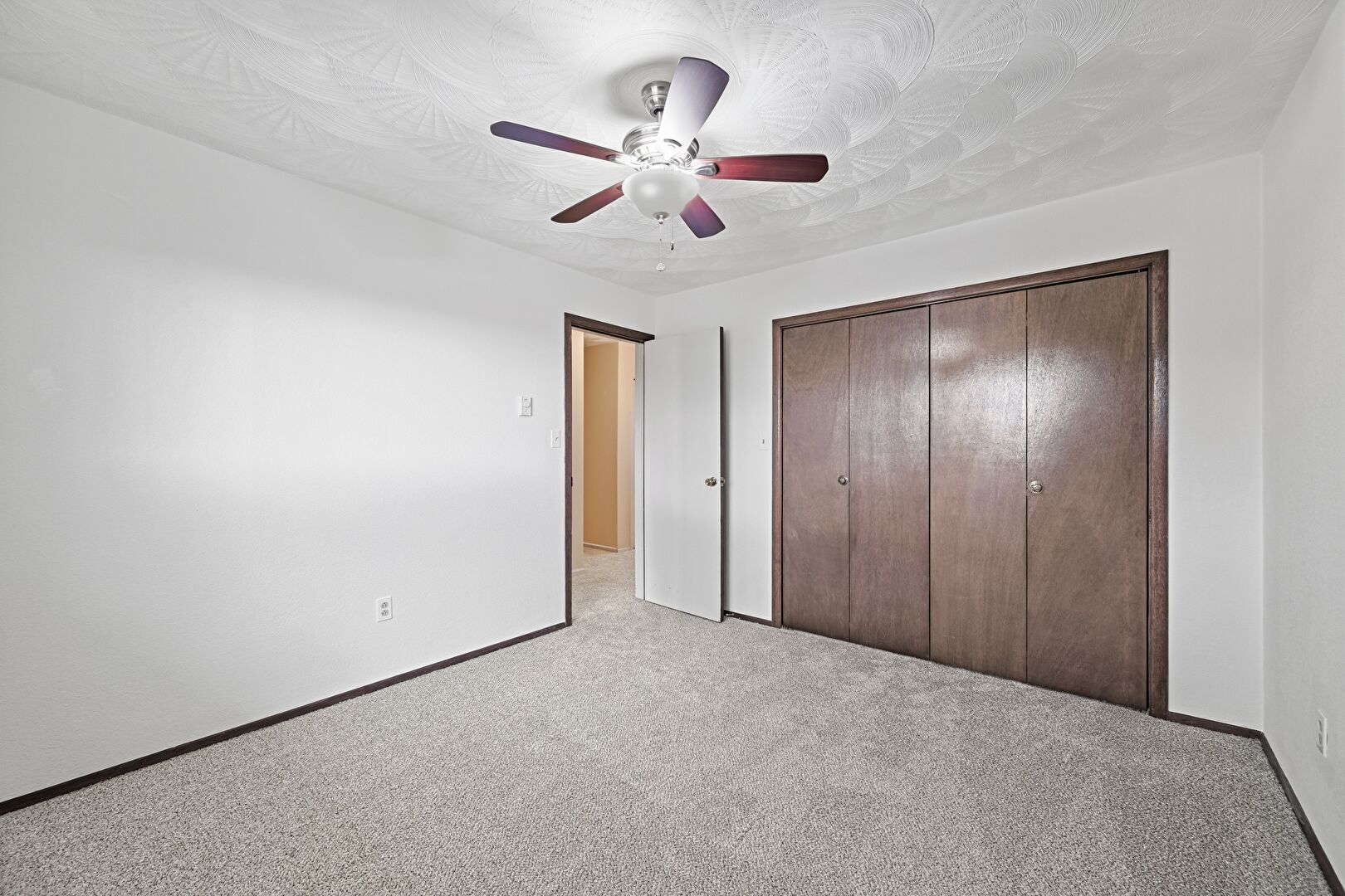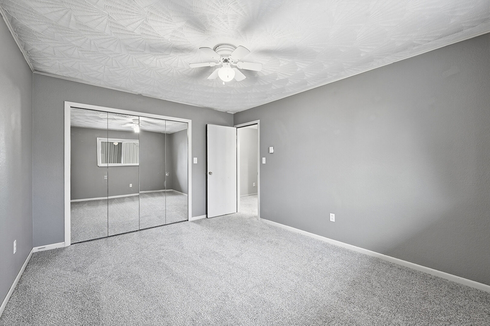 Baseboards Wall, Carpet, Ceiling Fan, Closet, Drywall, Natural Light, Textured Wall, Baseboards Wall, Carpet, Ceiling Fan