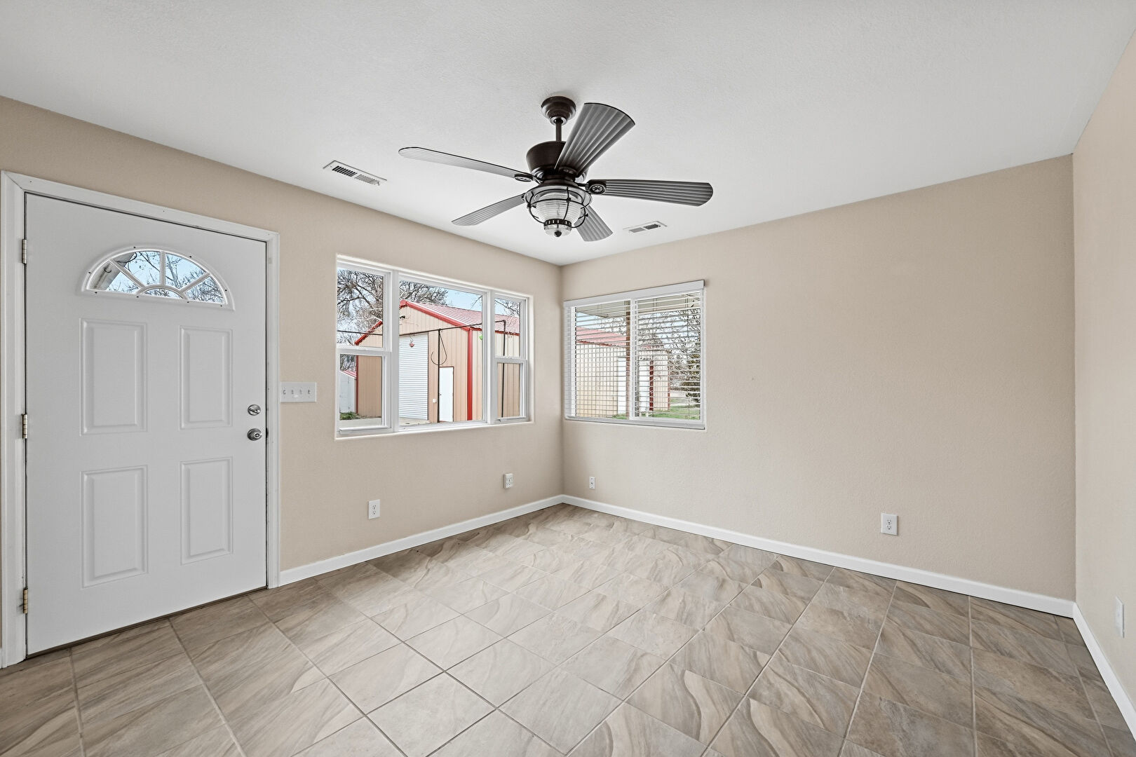 Baseboards Wall, Ceiling Fan, Closet, Drywall, Natural Light, Stone Finish Floor, Vent, Ceiling Fan, Drywall