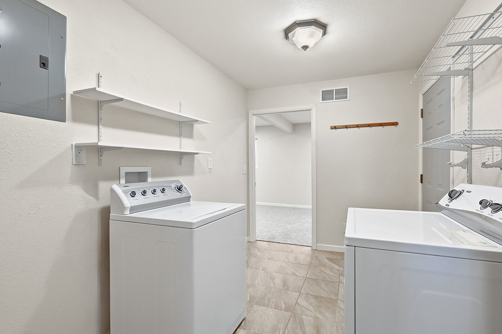 Baseboards Wall, Drywall, Electric Panel, Laundry, Vent, Washer Hookup