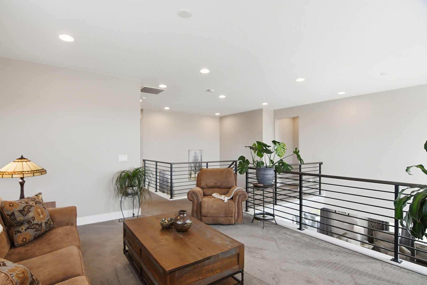 Baseboards Wall, Carpet, Drywall, Recessed Lighting, Smoke Carbon Monoxide Detector, Vent, Upstairs Landing