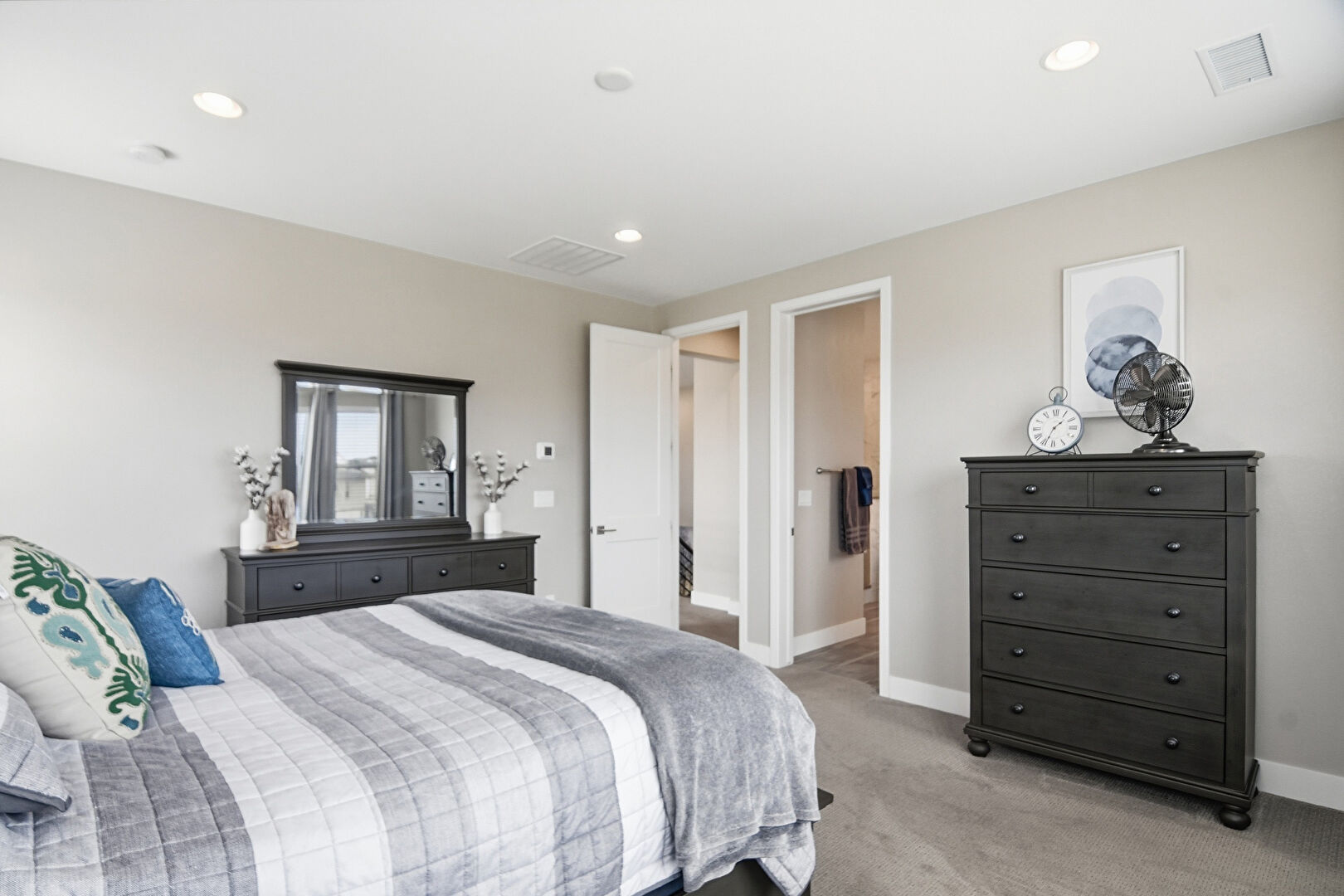 Baseboards Wall, Carpet, Natural Light, Recessed Lighting, Smoke Carbon Monoxide Detector, Vent, Drywall
