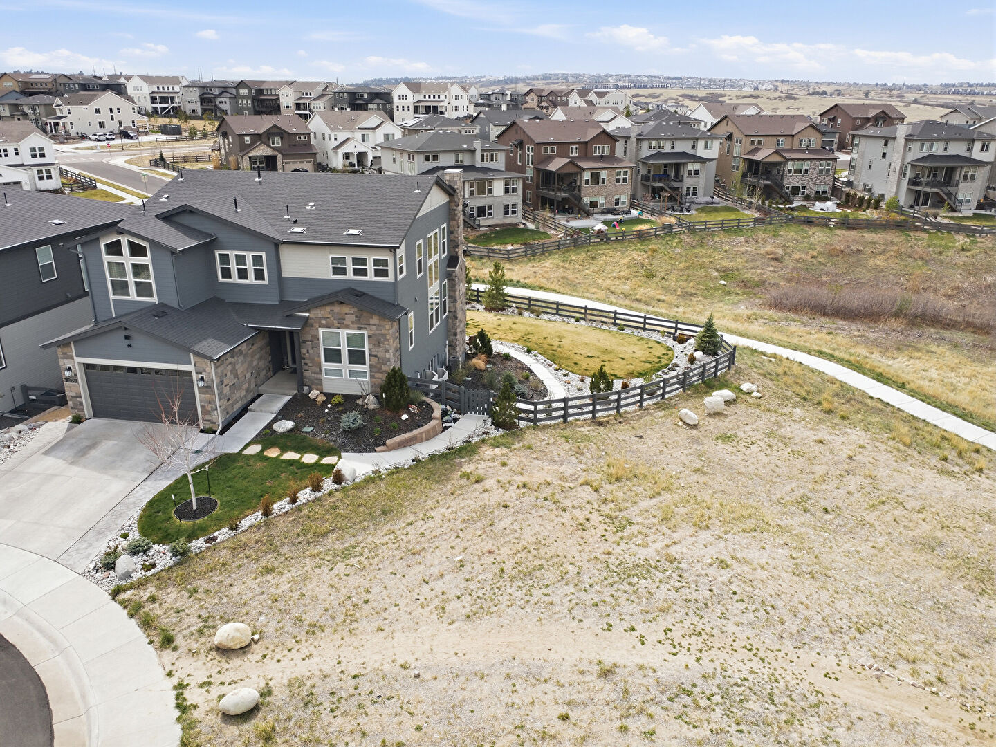 Built In Garage, Driveway, Gutters, Horizontal Siding, Lawn, Residential View, Stone Siding, Downspout, Residential View